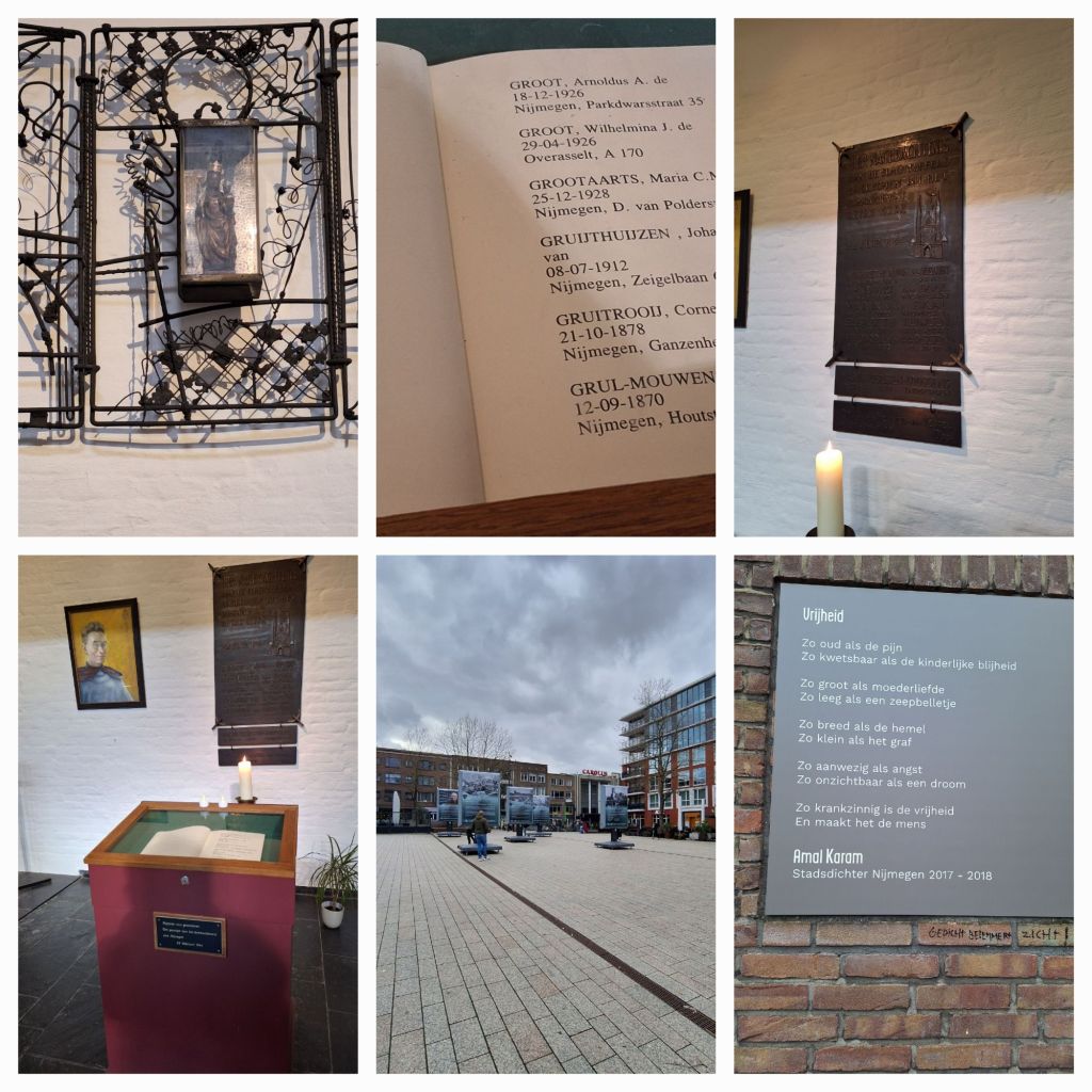 22 februari 1944, het bombardement van Nijmegen. Ik herinner me het boek dat ik in 2005 gelezen heb. Bart Janssen, een baby in 1944, die wonderlijk ontsnapte met zijn ouders, gaf in dat boek de bijna 800 slachtoffers een gezicht. Letterlijk, want van veel slachtoffers had hij foto’s in bezit gekregen en die staan niet alleen in dat boek maar achter het stadhuis hangen grote panelen waarop alle slachtoffers worden genoemd, met foto en naam, indien aanwezig en bekend.