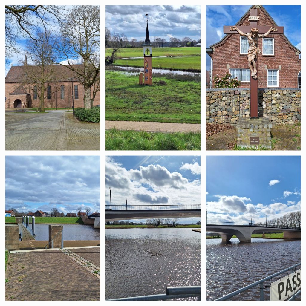 Ik ben bij Well, en dat betekent wal. Hier maakt de Maas een bocht naar het Westen, waardoor hier relatief makkelijk aangelegd en overgezet kon worden. Ik zie een bordje Kevelaer staan! Yeah, op de goede weg.