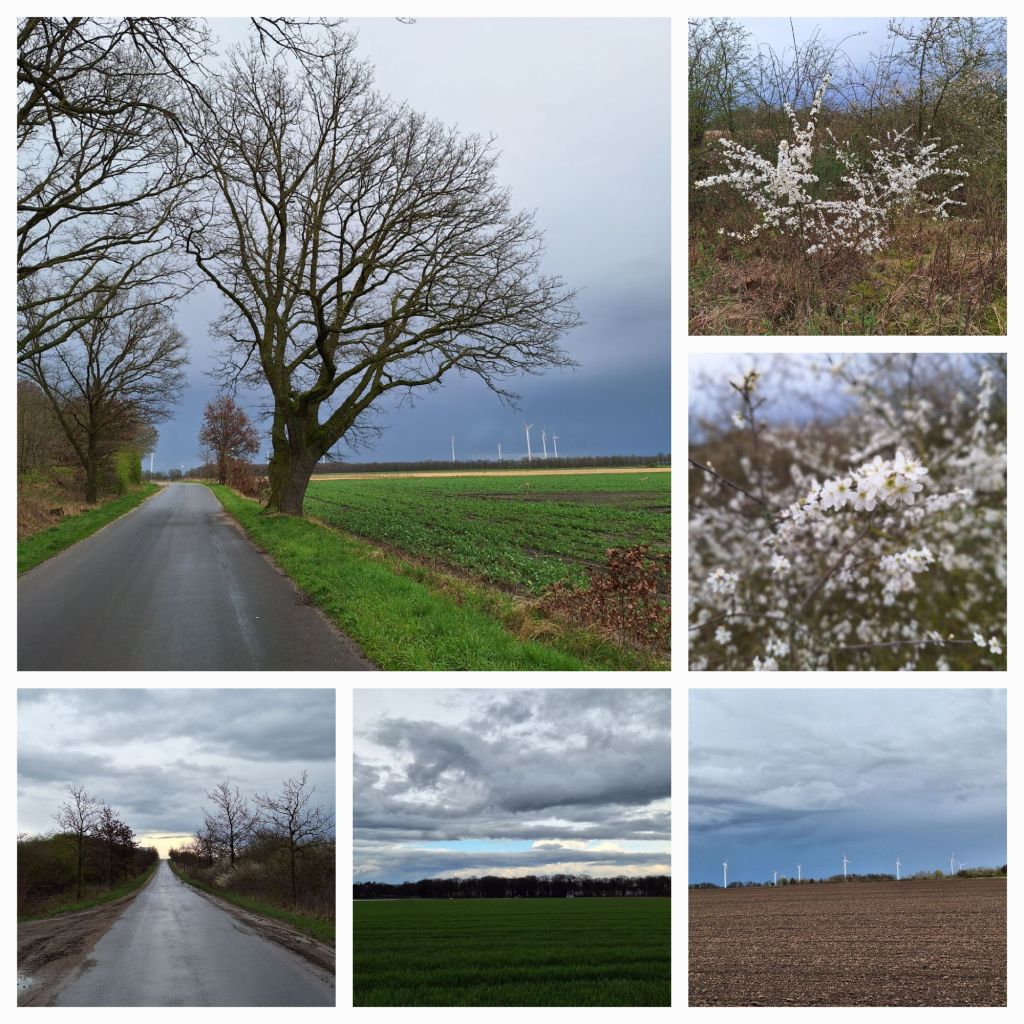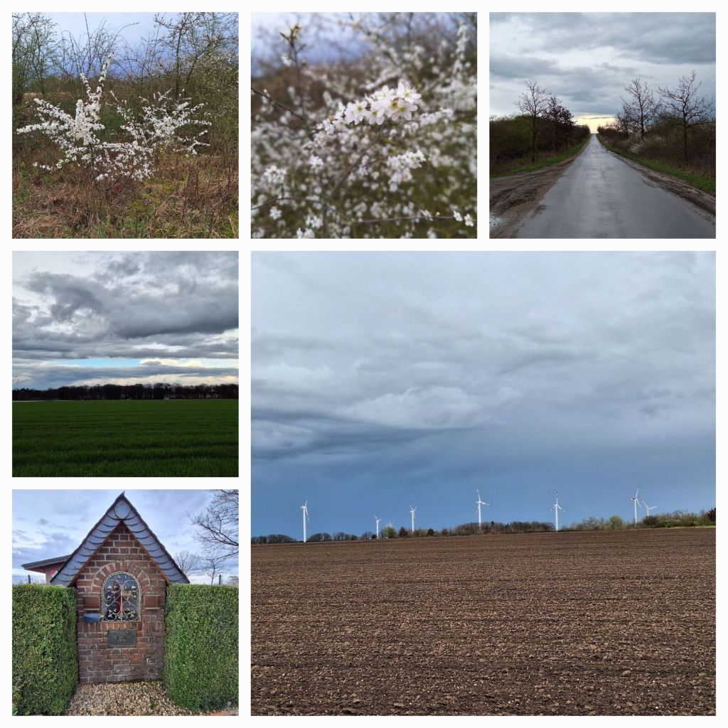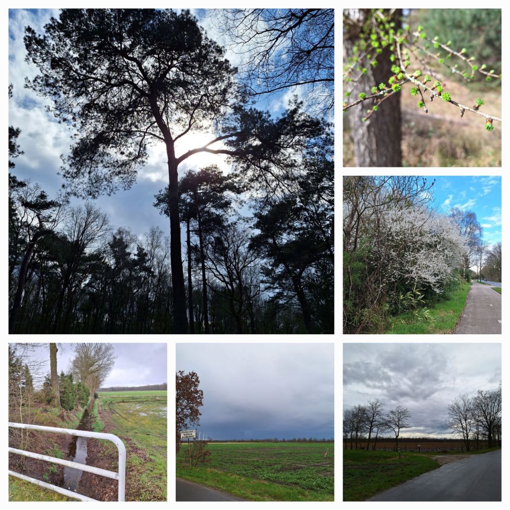 Met plu, trui en regenjas vervolg ik de weg, Duitsland in. De lucht is ontzettend donker, maar Buienradar geeft aan dat ik net ten noorden van een fikse buienlijn zit. De regen houdt inderdaad op en ik loop door het landelijke gebied ten westen en noorden van Kevelaer.