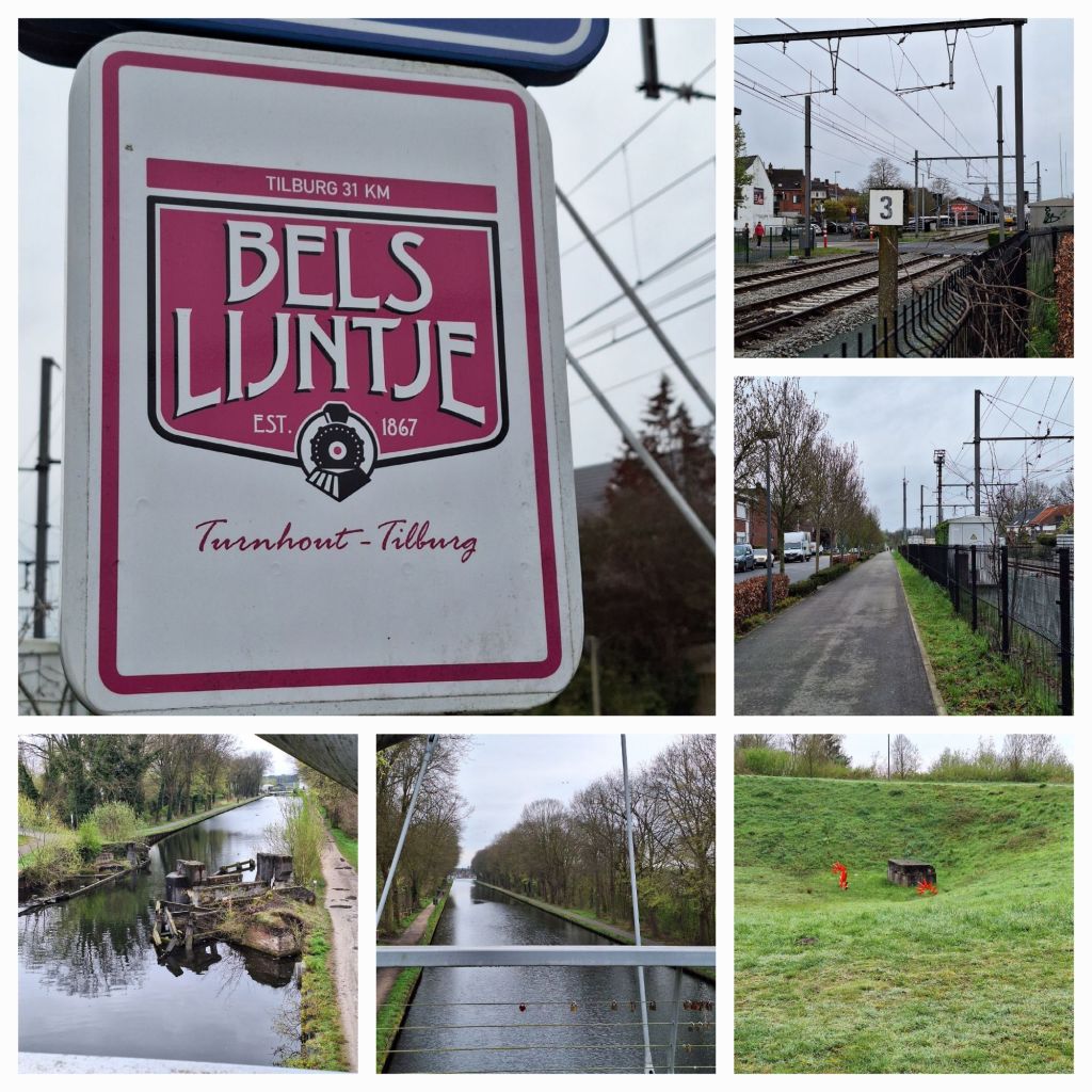 Deze voormalige spoorlijn uit 1867 begon zijn leven als onderdeel van spoorlijn 29, Tilburg Turnhout Aarschot. Deze grensoverschrijdende spoorlijn was bedoeld om de lijn Roosendaal Antwerpen te ontlasten en natuurlijk ook om daarmee te concureren. De spoorlijn heeft tot 1934 dienst gedaan voor personenvervoer en tot 1973 voor goederenvervoer. Nog in 1959 werd het noordelijkste deel omgelegd en er was ook een industrielijn naar Riel en Goirle. Vandaag is het een prachtig vrijwel ononderbroken fietspad en met de wind in de rug is het heerlijk fietsen. Het is fris, maar droog en daar doe ik het voor.