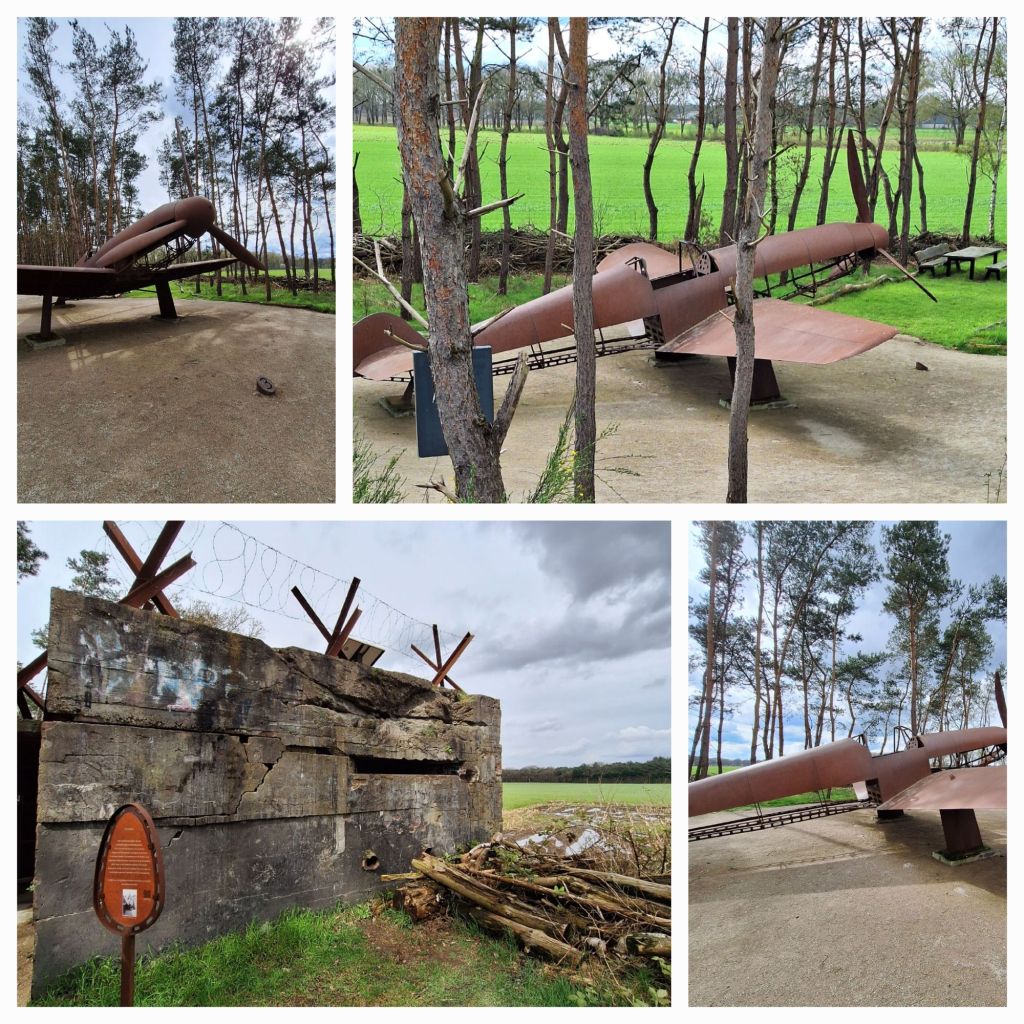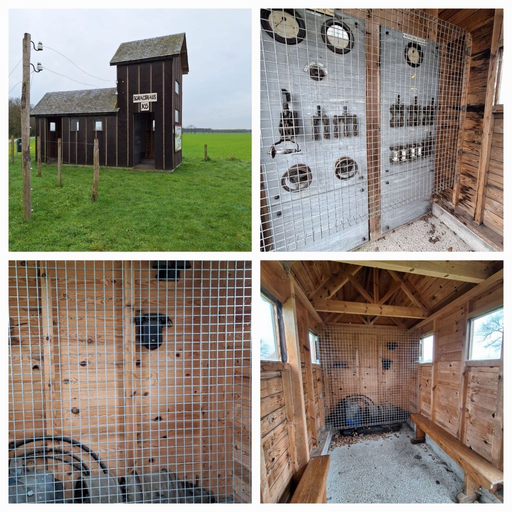 Ik was even weer terug België in gegaan, naar Zondereigen. Ten tijde van de Eerste Wereldoorlog was het de Duitsers er veel aan gelegen om de grens tussen België en Nederland ondoordringbaar te maken, voor vluchtelingen en smokkelaars. Daartoe werd een 322 km lange draadversperring aangelegd en in Zondereigen zijn twee reconstructies te zien. Net voor het dorp staat Schalthaus K5. Dit bescheiden en onschadelijk uitziend houten gebouwtje was een schakelhuisje voor de draad. (Om de 500 meter tot twee kilometer stond zo’n huisje.)