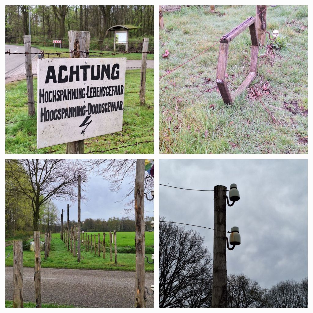 Iets voorbij Zondereigen staat nog een reconstructie, als vredesmonument. Hier is ook te zien dat zo’n draad ook mensen inventief maakt. Met een zeshoekig houten rek kon je onder de onderste draad doorkruipen. Dan was je er nog niet, maar je leefde nog wel.
