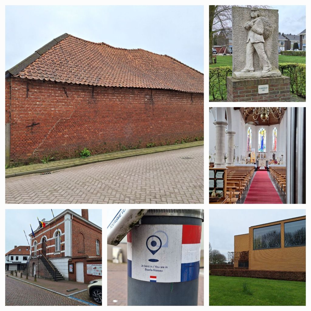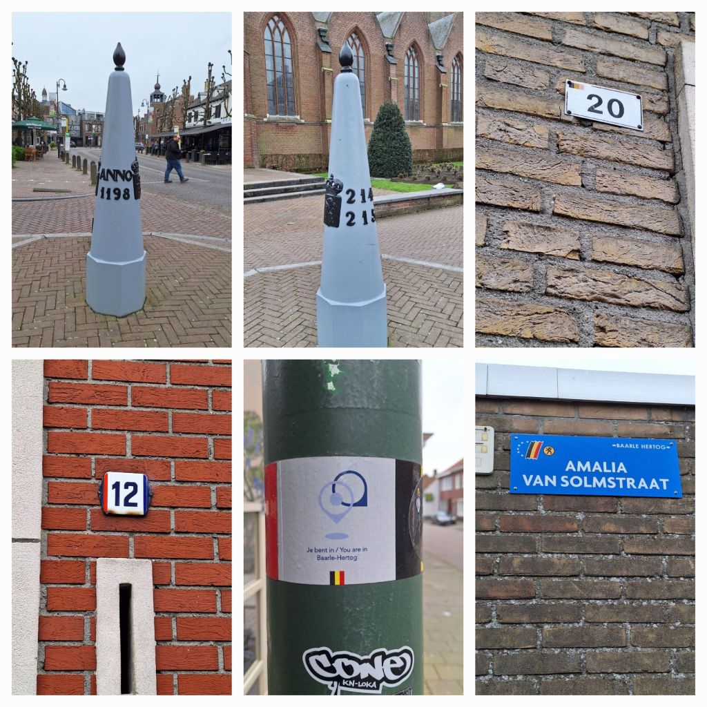 Ik maak een wandeling van 4,5 km door Baarle. Hertog is het Belgische deel, dat bleef in handen van de hertog van Brabant; Nassau is het Nederlandse deel. Door overerving ging de titel heer (later baron) van Breda over op de Nassaus, later de Oranjes.
