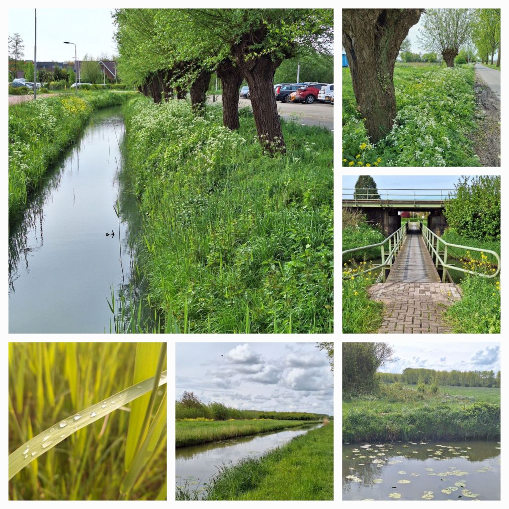 Ik loop maar een paar 100 meter van de spoorbaan, maar het is hier ongelooflijk mooi en stil. Langs brede sloten kom ik weer in de buurt van Culemborg om dan weer westwaarts te gaan. Op de Rommersteeg loop ik tussen de polders Lange Avontuur en Korte Avontuur.
