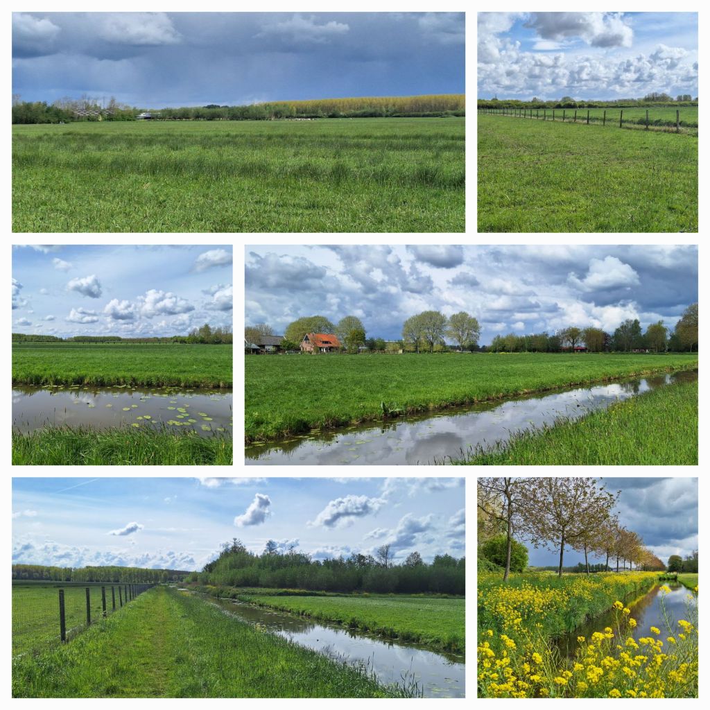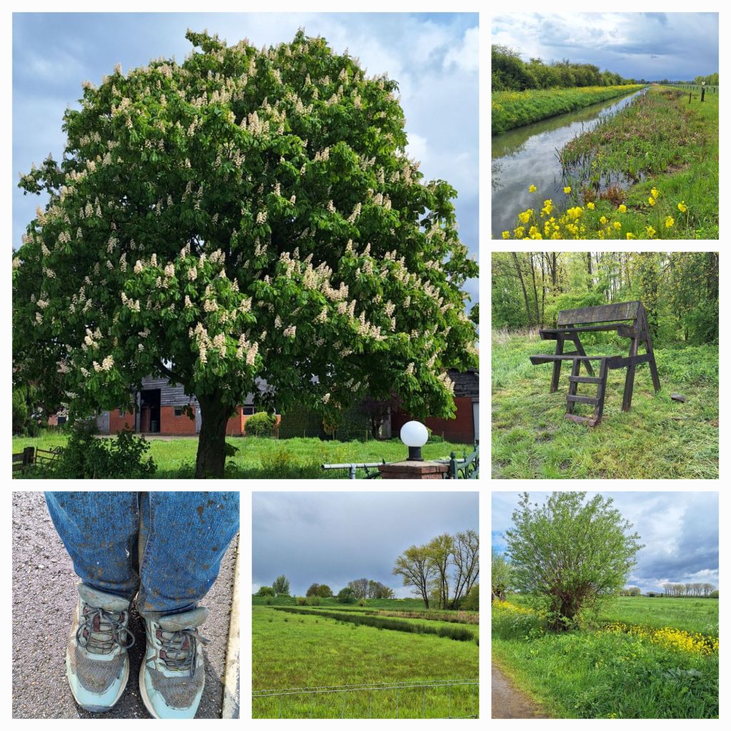 Dan weer verder. Ik kies voor de alternatieve route, zodat mijn drogende schoenen niet opnieuw nat worden. Bij zorgboerderij De Witte Schuur kan ik terecht op het terras. Koffie mét, in het zonnetje, uit de wind: goed te doen.