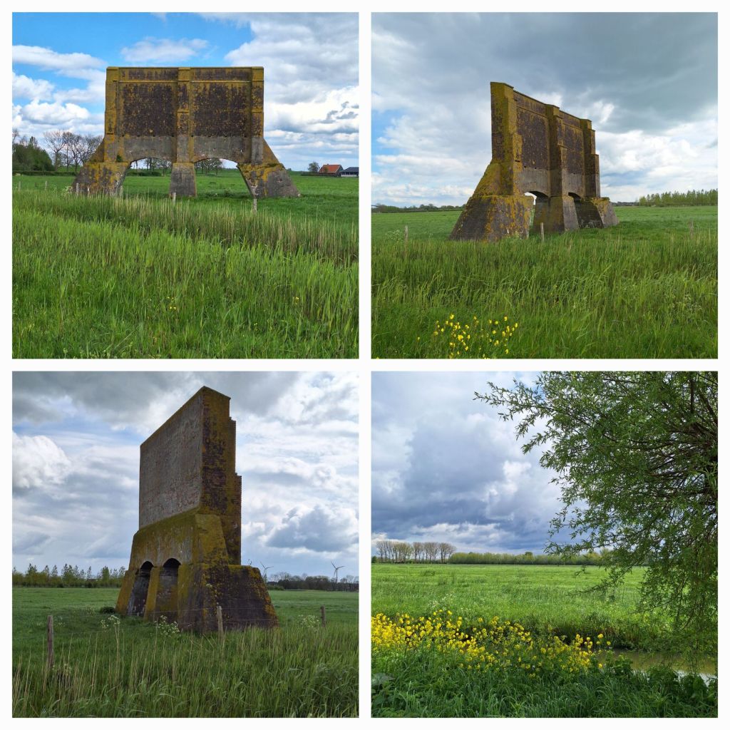 Opmerkelijk: onderweg kwam ik langs een inundatiebank. Het is een hoge bank. Klim je naar boven, dan zitten je voeten net boven het waterpeil van de inundatie.