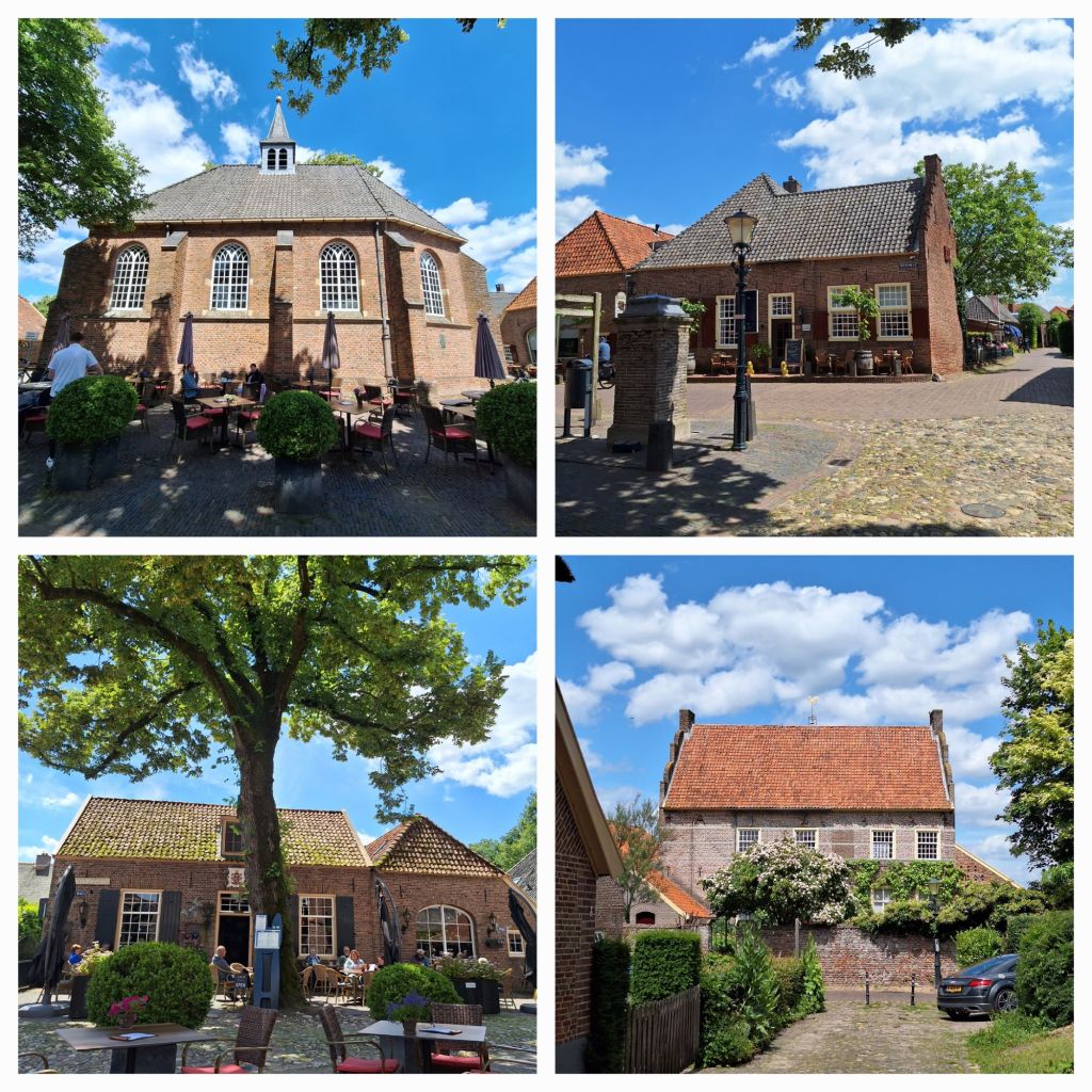 Bronkhorst heeft prachtige 17e eeuwse panden (vanwege de stadsbrand) waarvan het Hooge Huis een stedelijke allure heeft met de trapgevels. Over de keien loop ik weer naar de weg en ga op pad naar Olburgen.
