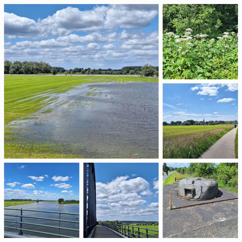 Ik heb een prachtig uitzicht op de volle IJssel. Het water staat hoog en delen van de uiterwaarden staan onder water. Ik heb weer energie, merk ik en het fietsen gaat lekker. Niet snel, maar lekker.