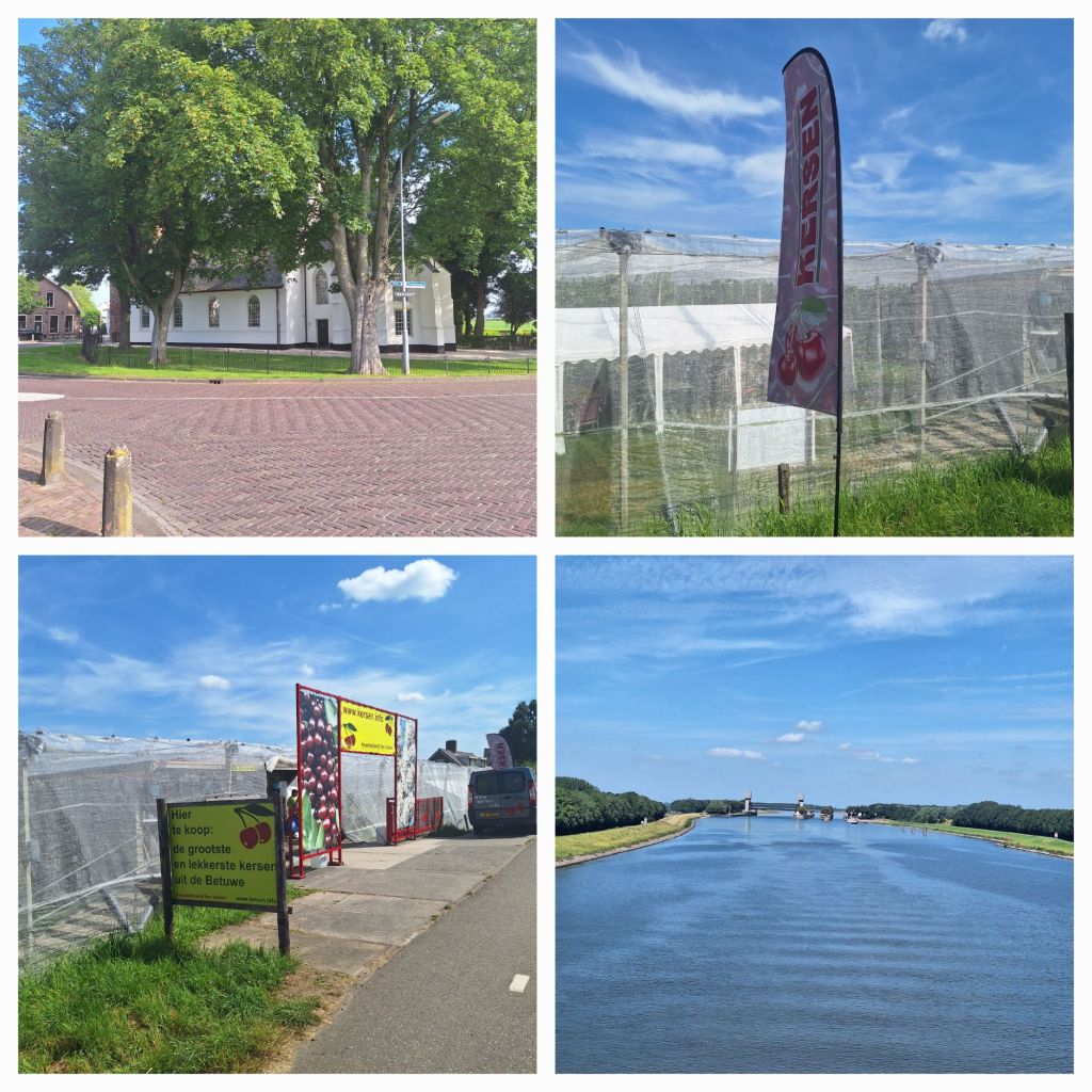 Onderweg kom ik natuurlijk allerlei grote en kleine(re) kersenkramen tegen. Die van Hakkert aan de dijk tussen Buurmalsen en Buren is heel groot. Hier kun je ook goed zien hoeveel verschillende soorten kersen er zijn, allemaal met hun eigen naam, smaak en oogsttijd.
