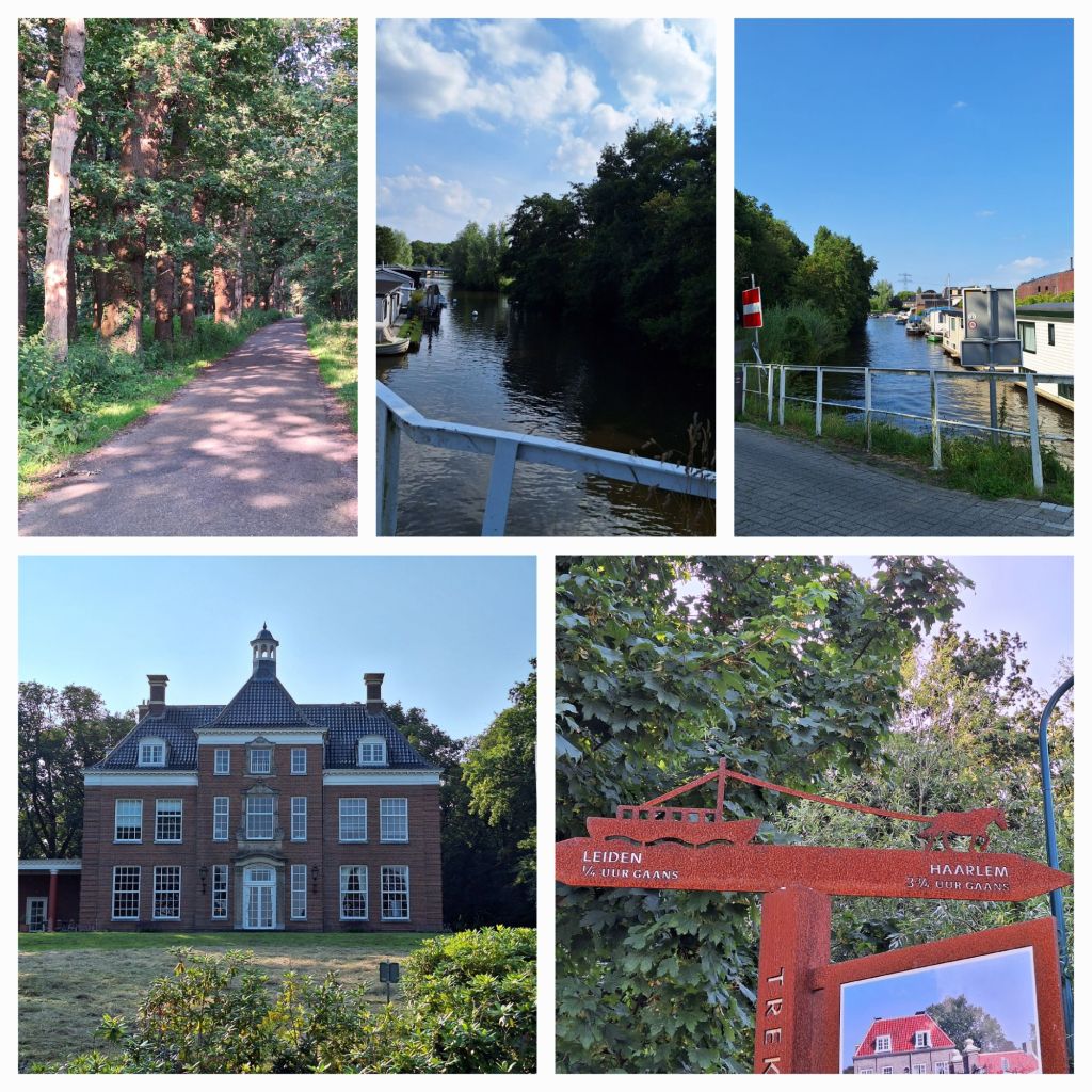 Er ligt nl. al sinds 1657 een kanaal tussen deze twee steden: de trekvaart Leiden-Haarlem over bijna 30 km. In Leiden is het even zoeken maar al snel rij ik langs het water van deze eeuwenoude verbinding. Het werd in acht maanden gegraven, louter mankracht. Heel modern eigenlijk, elke 400 meter werd aanbesteed en door een aannemer aangenomen. Zo werkten er 1500 man tegelijk aan deze vaart. Halverwege ligt Halfweg en bij Vogelenzang verlaat ik het kanaal om door prachtige duinlandgoederen te fietsen. Het is bijna half acht als ik bij het hotel aankom: Amadeus.