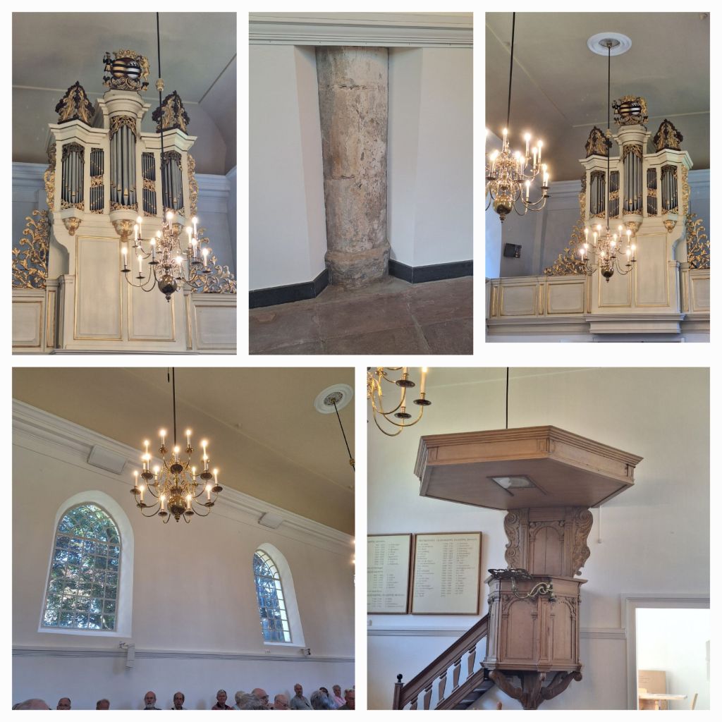 Ik zoek een plekje in het koor om te luisteren naar het volgende concert. Het 18e eeuwse orgeltje heeft 17e eeuws pijpwerk uit een orgel uit de Eusebiuskerk in Arnhem. De kas zou door een plaatselijke timmerman gemaakt zijn. Helaas heeft de warmte invloed op de tongwerken die daardoor valsig klinken. Geeft niet, ’t is toch mooi.