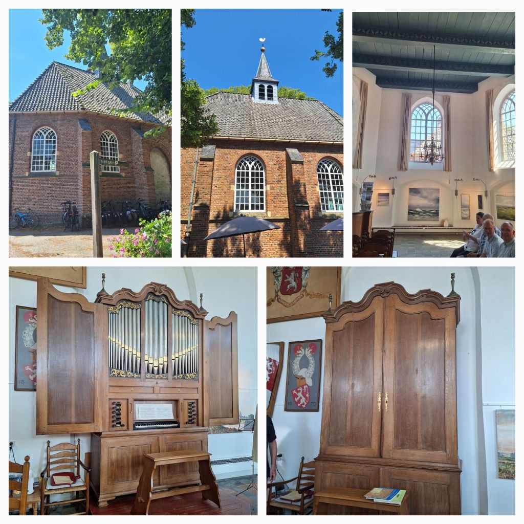 15 km fietsen over de IJsseldijk is met dit weer geen straf. Het uitzicht is prachtig en de wind zorgt wat afkoeling. Bij het Wapen van Bronkhorst is het tijd voor de lunch en dan kunnen we in de kleine kapel genieten van een kabinetorgel. En inderdaad, als de deuren dicht zijn, zou je verwachten dat het een linnenkast was.