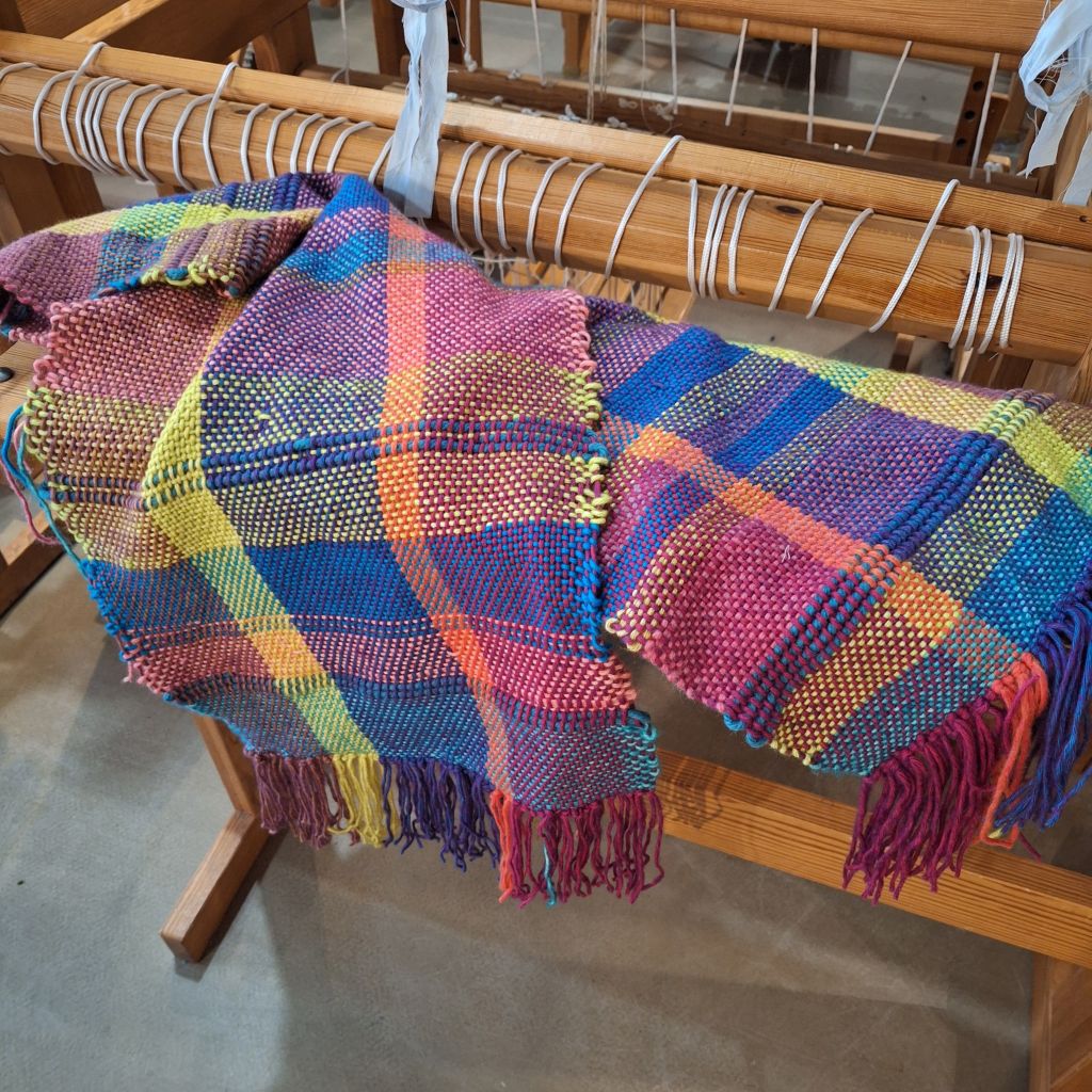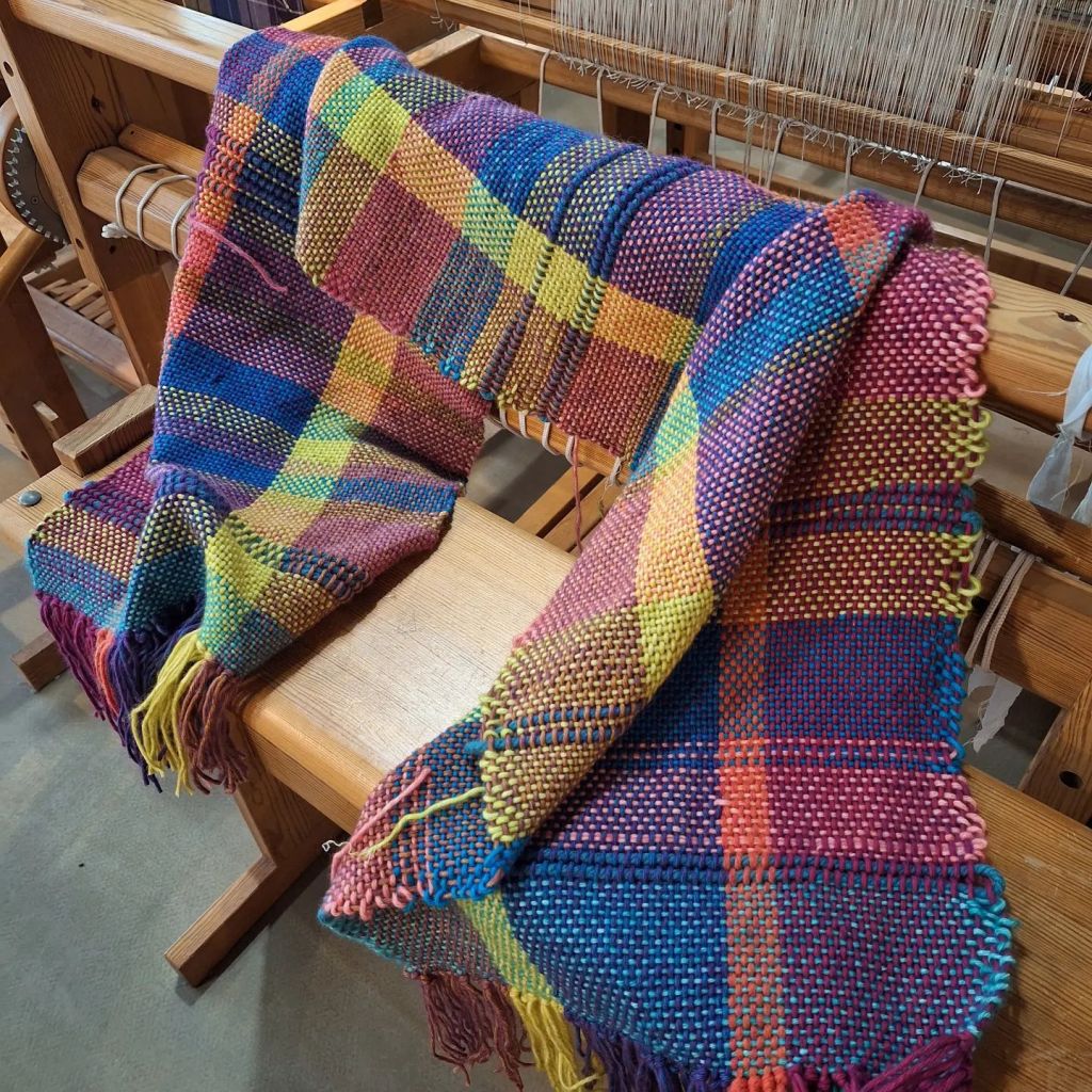 Aan het eind van de dag ga ik naar huis met een zelfgeweven sjaal en met veel meer begrip van hoe textiel in elkaar zit. Hoeveel technieken er bij komen kijken, hoe ingenieus al zo’n klein weefgetouw is. En hoeveel je kunt met weven. Denk aan damastweven, jaquardweven, tartans en nog veel meer.