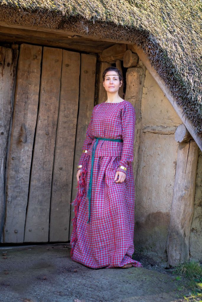 Er moet ontzettend veel tijd in deze jurk gestoken zijn. Het spinnen van het garen met een spintol, het verzamelen van voldoende verfstoffen, het verven en daarna het weven van de stof en het in elkaar zetten. Laat je toch wel even anders kijken naar je blouse of shirt, toch?