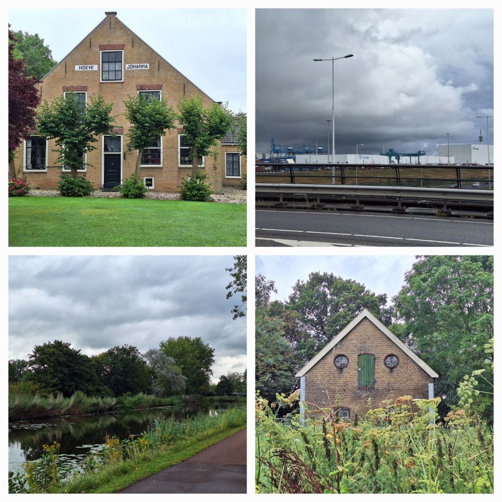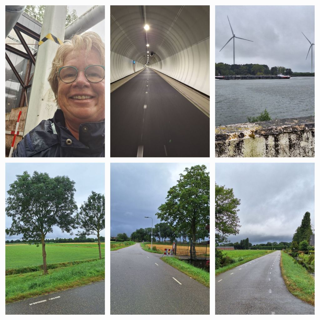 Vanmorgen in Strijen is het mismoedig weer. Warm, bijna 20 graden, en regen. Toch maar alles aan, regenjas, afrolbroek, schoenhoezen. Ik zoek een mooie route uit over de dijken van de Hoeksche Waard en zo kom ik bij de Heinenoordtunnel. Het is koel in de tunnel en met een rotvaart suis ik naar beneden en moet dus ook weer naar boven klimmen.