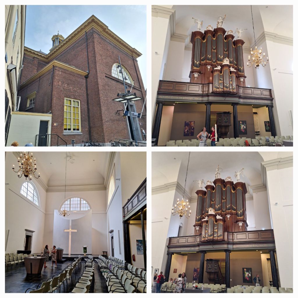 Het is kermis in Den Bosch. Ik loop langs de grote apparaten op de Markt, her en der moet ik glas ontwijken, straatvegers zijn druk in de weer. Ik ga ter kerke in de Grote Kerk van Den Bosch, een sober en groot bakstenen gebouw, gebouwd tussen 1818-1821. Binnen is het zoals ik verwacht bij een protestantse kerk: hoog, wit, kaal op wat kleine kunstwerken na. Panelen achterin vormen een kruis. Voor, tijdens en na de dienst geniet ik van het orgelspel en de preek geeft me stof tot nadenken.