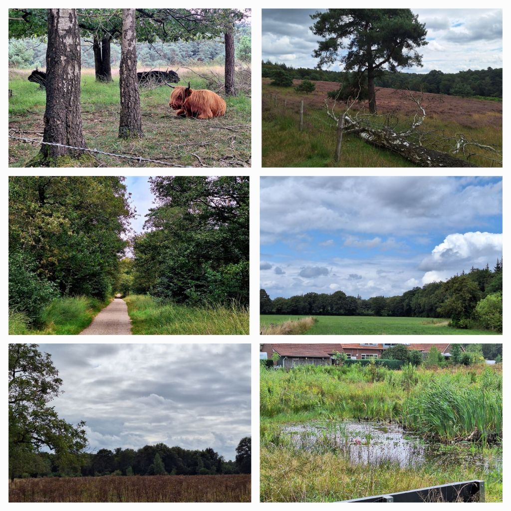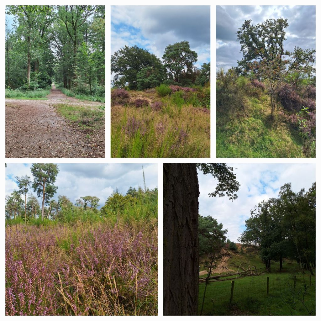 Dit hele verhaal is in schril contrast met het prachtige gebied waar ik door wandel. Overal bossen, bloeiende heide, mooie vergezichten, en de rust.