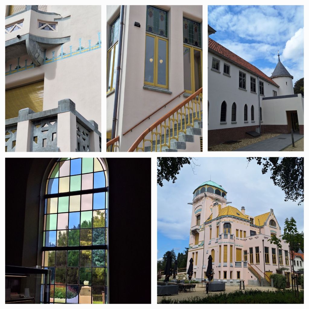 Het zalmroze hoofdgebouw heeft gele dakpannen en de massieve vierkantige toren heeft lichtgroene/turquoise dakbedekking. Overal zijn versieringen aangebracht in kleine tegeltjes. Geel, turquoise, lila, paars, 35.000 tegeltjes versieren het hele hoofdgebouw in prachtige motieven. Het Jugendstil-gebouw stamt uit 1904 en is recent gerestaureerd. De binnenkant schijnt al even prachtig te zijn, maar die kan ik helaas niet zien. Dan moet ik apart een rondleiding boeken. Reden om een keer terug te komen.