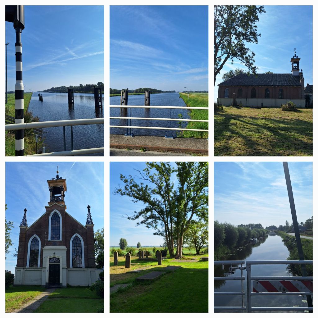 Vandaag fiets ik dwars door Groningen, van Scheemda naar Leens. Voortdurend verandert het landschap: veenkoloniën, grote kanalen, inpolderingen, riviertjes, kleine dorpjes, een sluisje, een torentje op een oud kerkhof, een klokkenstoel, grote boerderijen, kleine arbeidershuisjes, kerkjes en kerken, borgen en een voormalig kloosterterrein. En de zee!