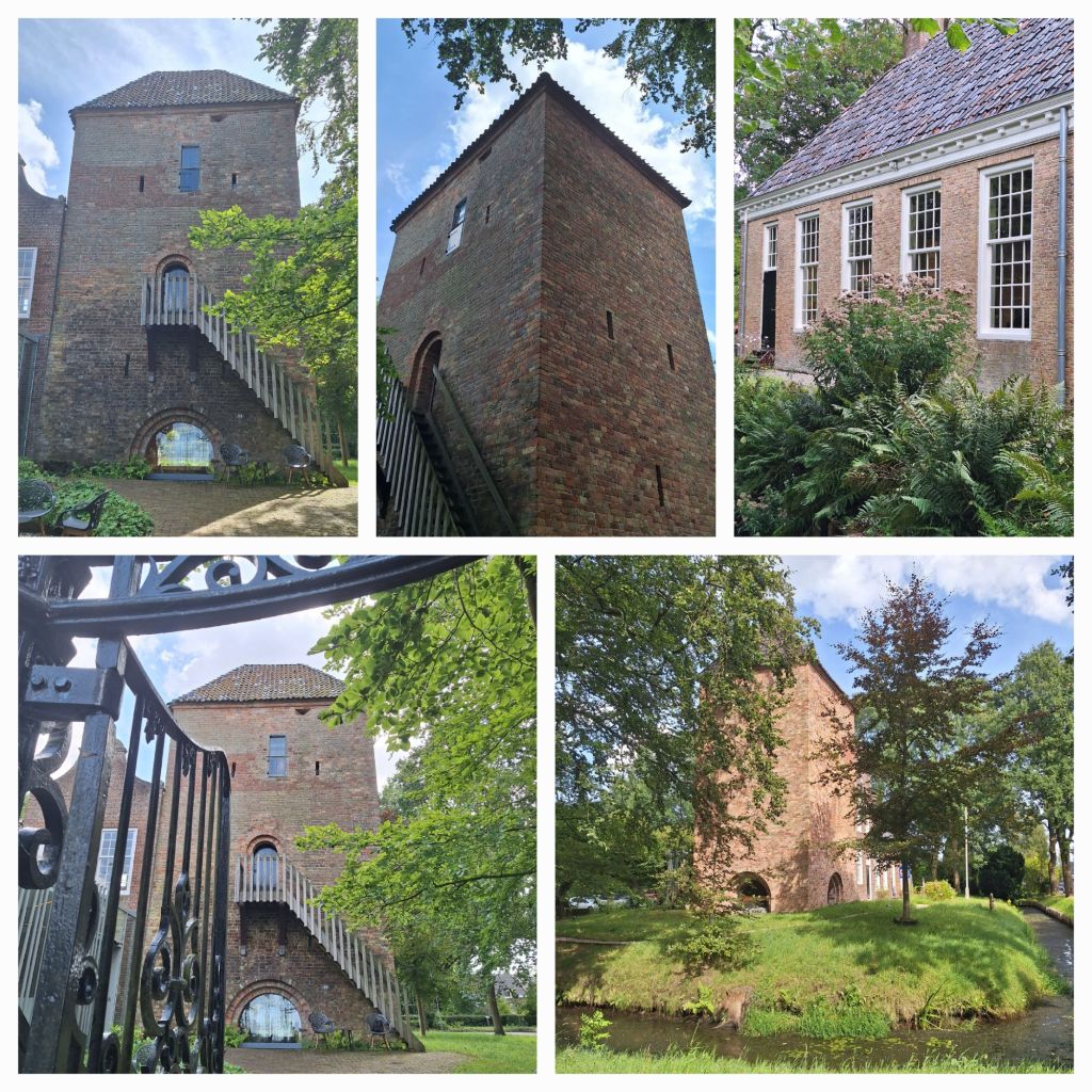In Veenwouden sta ik ineens voor de Schierstins, de oudste stins van Friesland, uit de 13e eeuw. Ik loop binnen en kan de toren in en het museum dat er bij hoort. Stinsen (van steen, stenen huis) waren in de basis verdedigingswerken of vluchtplaatsen of beide. De Schierstins heet zo omdat deze op enig moment eigendom van de Cisterziënzer monniken van klooster Klaarkamp bij Rinsumageest. Zij droegen grijze ofwel schiere pijen. Vergelijk Schiermonnikoog (eiland van de grijze monniken).