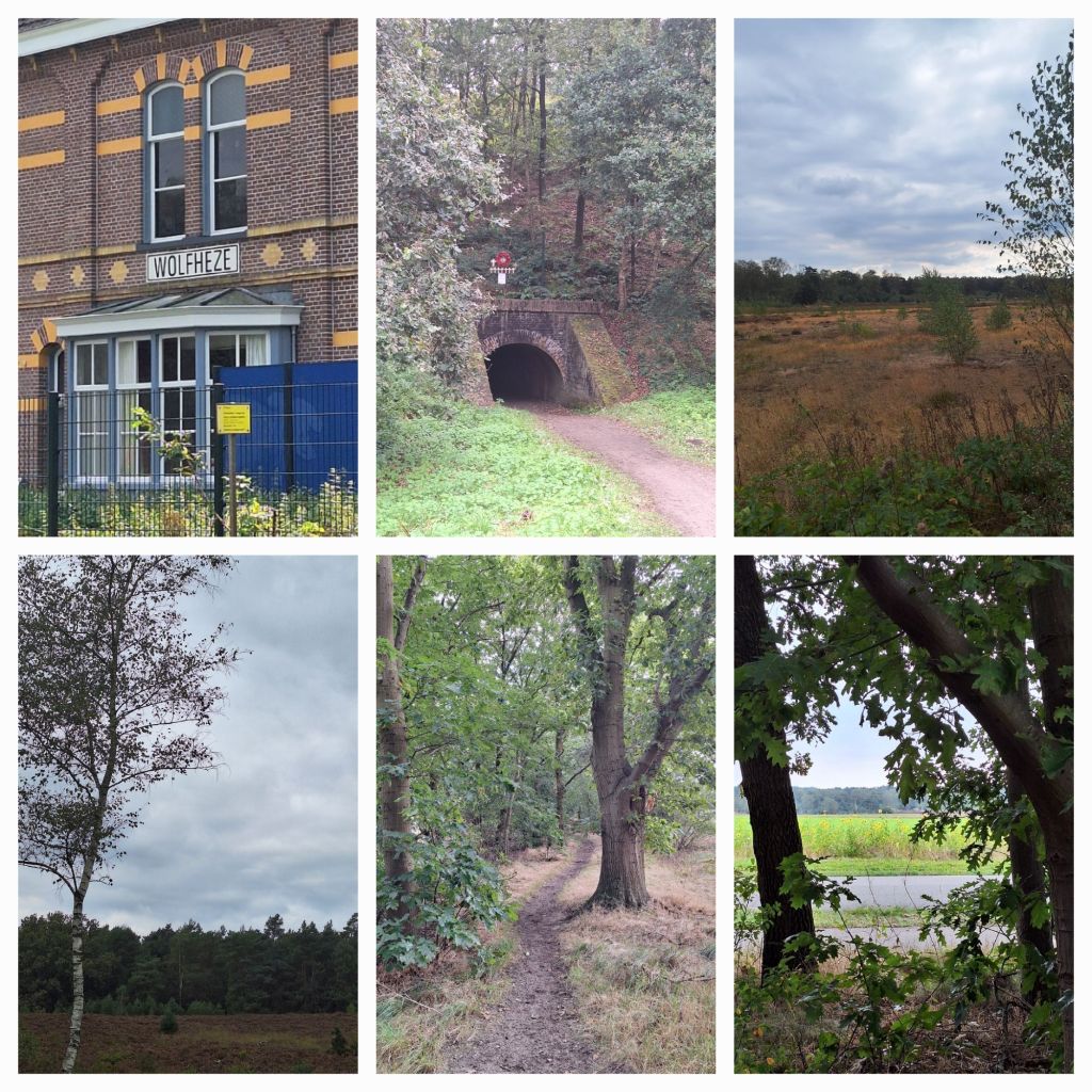 De vereniging Dorpsbelangen van Wolfheeze organiseert twee wandelingen langs deze route. Vanmiddag de 11 kilometer en daarom sta ik op het plein voor het station Wolfheze.