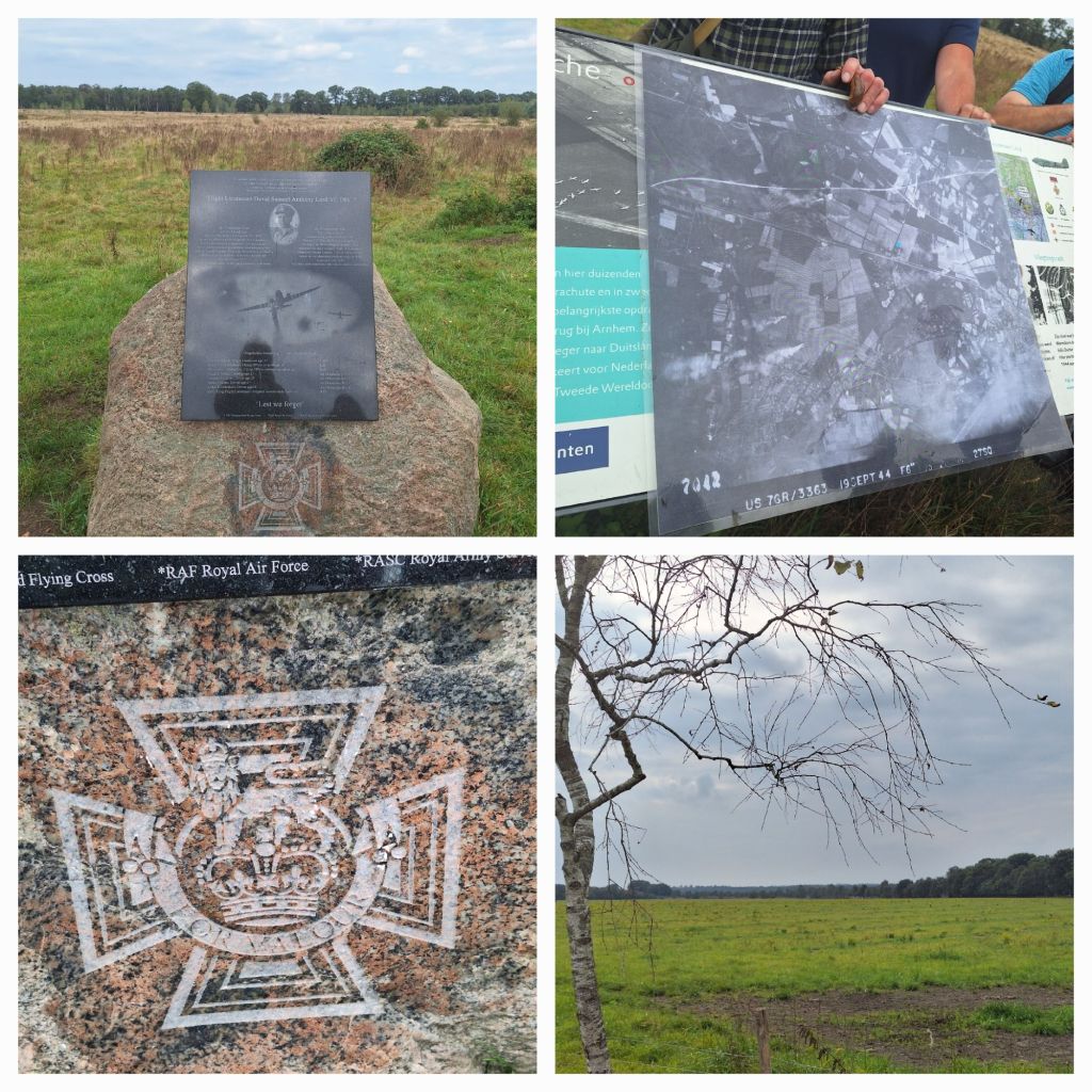 En het werd de Gliderwandeling. Net iets voorbij het kleine dorpje staat het Glidermonument, en deze wandeling gaat in een grote cirkel vanaf het station over en langs de landings- en dropzones.