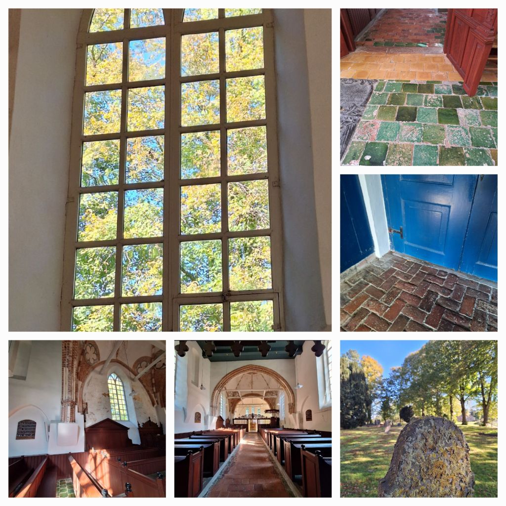 Eerst stap ik het kerkhof op rondom de Andreaskerk. Onder de bomen staan groenbemoste stenen, soms wat wankel, er liggen enorme scheefgezakte grafplaten, de zon schijnt uitbundig op het kerkje. Het is een 13e eeuws gebouwtje, nu niet groot meer. In de 15e eeuw zijn de dwarsarmen van de oorspronkelijke kruiskerk afgebroken. In de 19e eeuw is de toren afgebroken en nu heeft de kerk een charmant dakruitertje.