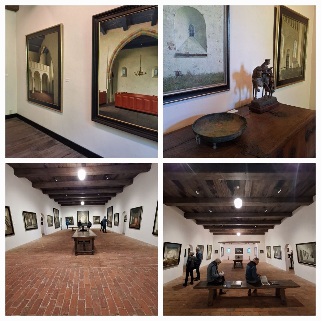 In de grote zaal hangen grote doeken van kerken, uit de omgeving, maar ook Frankrijk en Zwitserland.