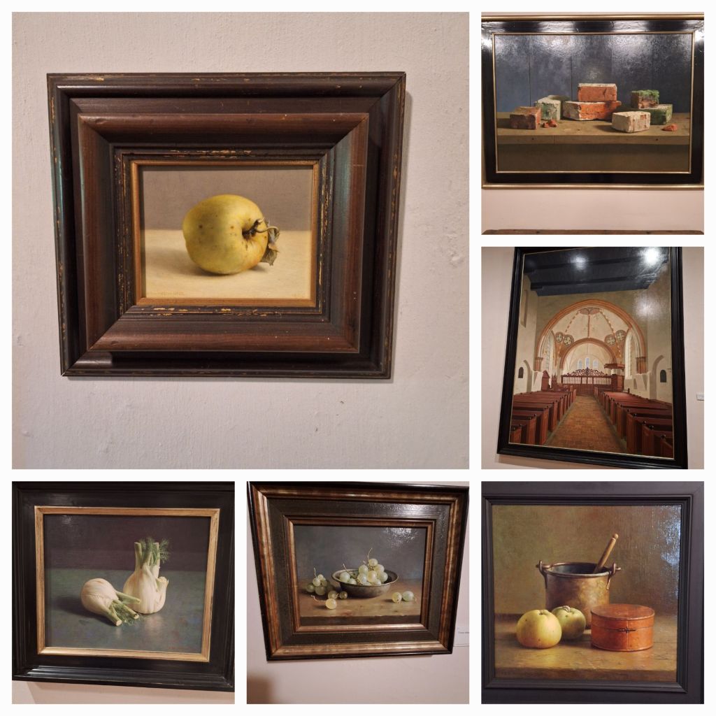 Opvallend is het totale gebrek aan menselijke interactie in de schilderijen. Mensen en dieren zijn er niet zien. Of nou ja, wel dieren, een visskelet, een dood vogeltje, een dood egeltje. Verder stillevens van fruit en groente met een kan of een kom. En natuurlijk de kerken. Maar geen mensen. Niets.