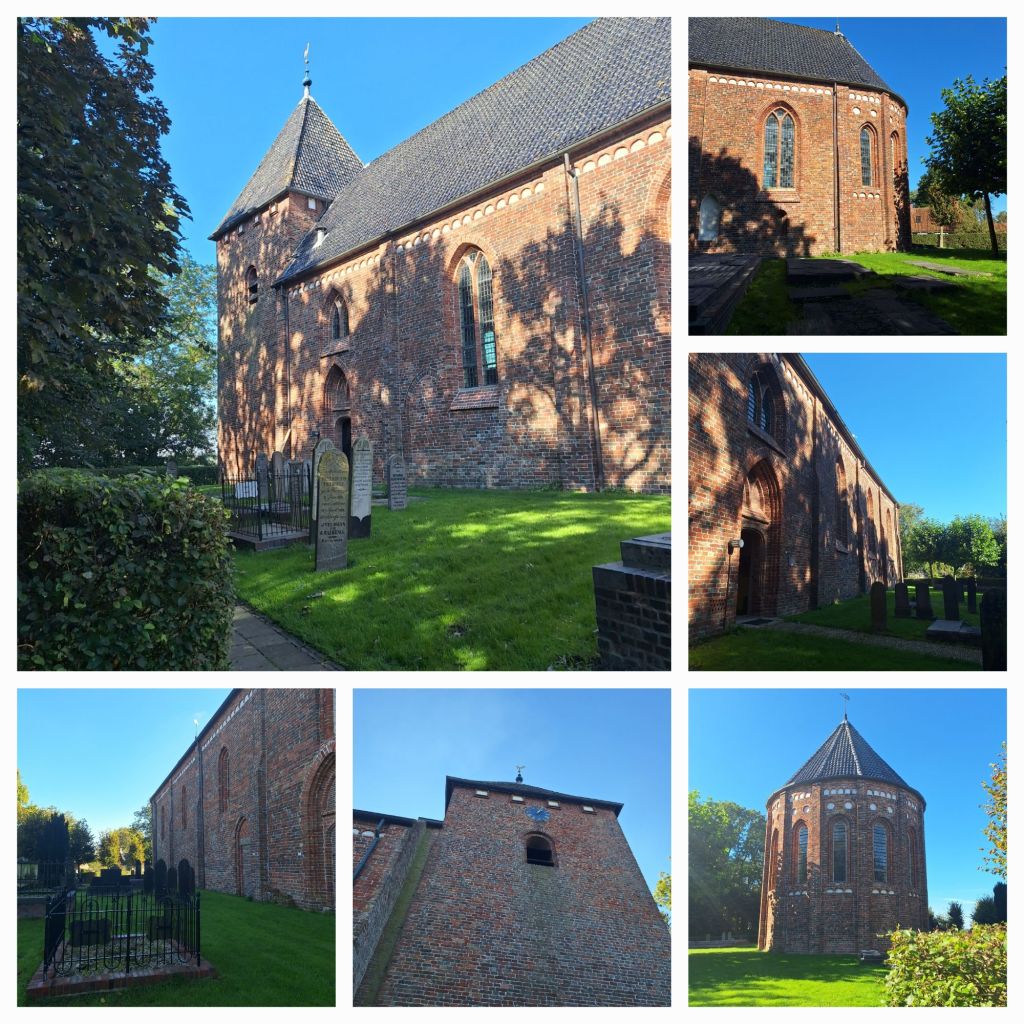 Na de koffie mét loop ik langs de immense Walfriduskerk. De 11e eeuwse toren hangt stevig uit het lood en de grote schuurachtige kerk in rode baksteen is merkwaardig. Oorlog, teruglopende bedevaart, Reformatie, alles samen zorgde ervoor dat de kerk te groot was voor dit dorp. De aanpassingen waren niet vriendelijk voor het gebouw.
