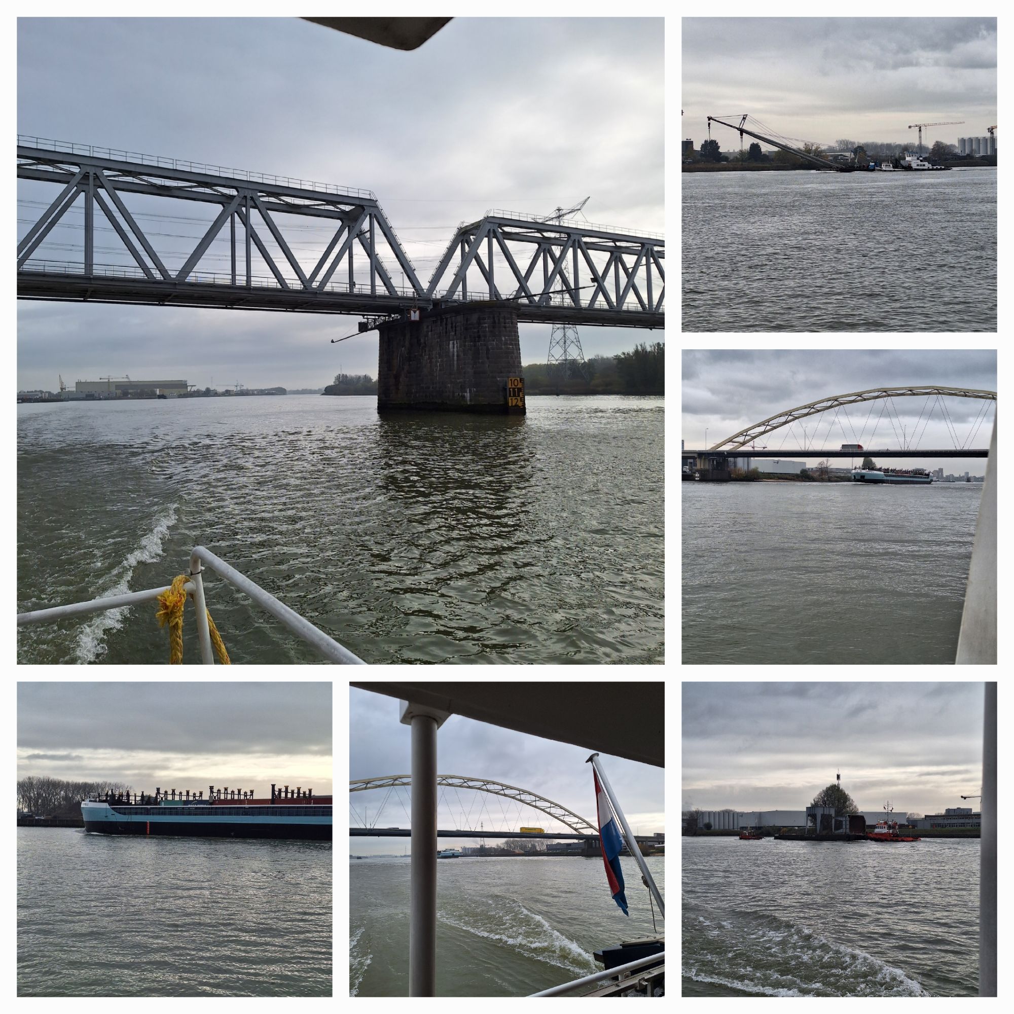 Het blijft mij altijd boeien, zo’n tochtje over het water. In het kleine halfuur zie ik hoe druk de rivier hier is. Er varen vrachtschepen, een vakantieschip, diverse bokken met sleep- en duwbootjes.