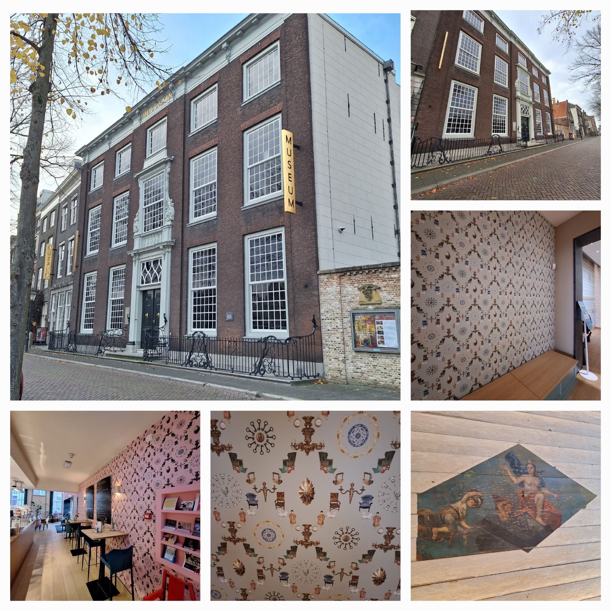 In het gezellige museumcafé, in het pand ernaast, geniet ik van de koffie en van de Dordtse hemel. Boven mijn hoofd is nl. een plafondbetimmering blootgelegd met daarop enkele stukken van de oorspronkelijke beschildering. Het was in de 18e eeuw de mooie kamer van het buurhuis.