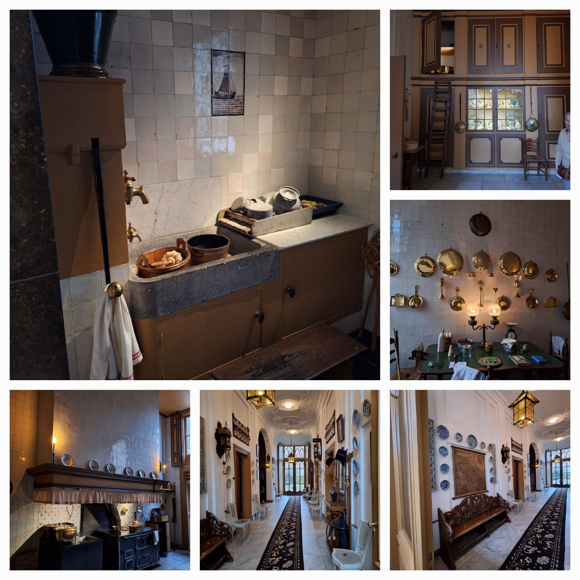 Ik stap eerst de spoelkeuken binnen en dan de grote keuken. In feite nog uit 1729, behalve de toevoeging van een groot kolenfornuis in de tijd van de Van Gijns.