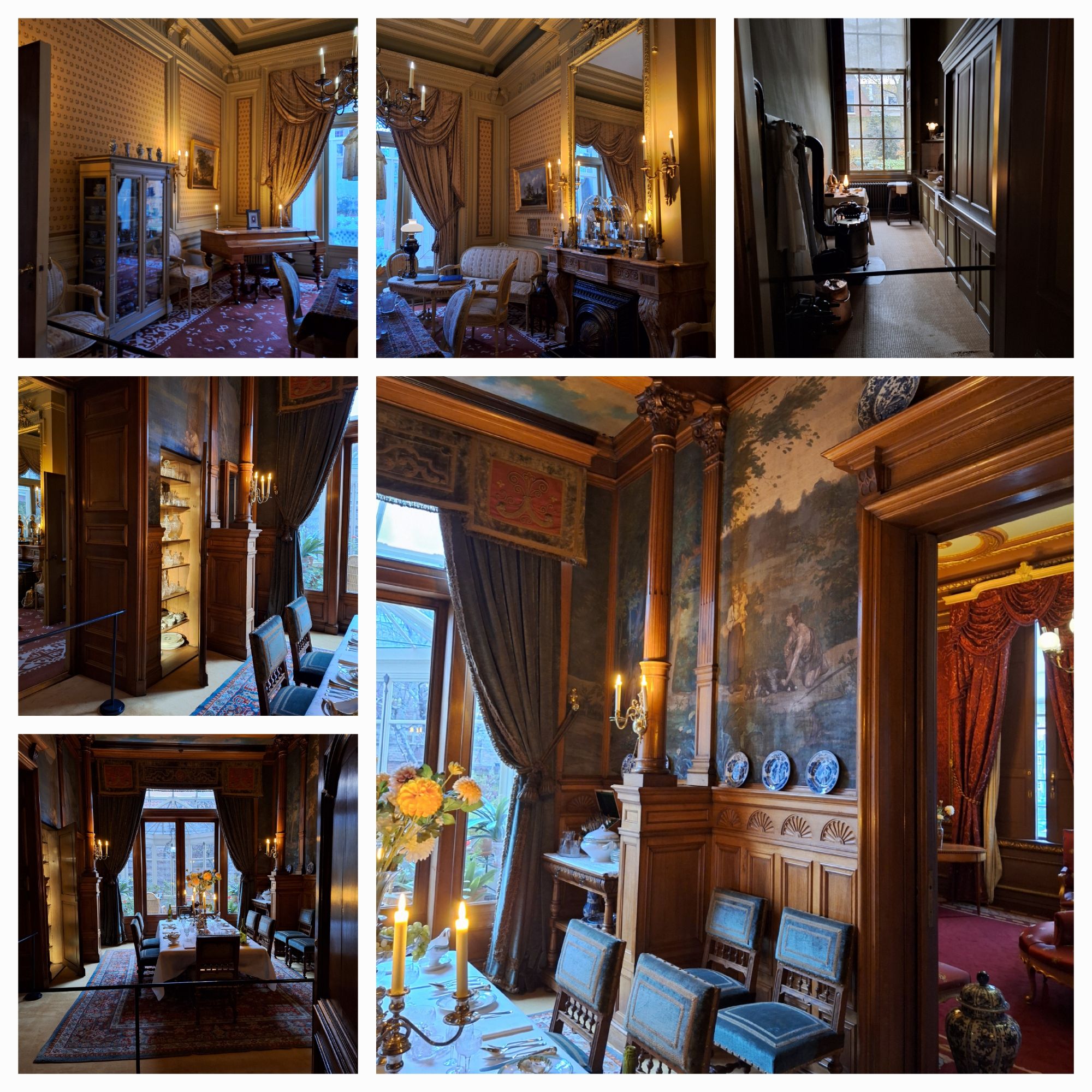 Grappig is hoe diverse neostijlen toch een eenheid vormen. Lodewijk XVI in de tuinkamer, Hollandse neorenaissance in de eetkamer en Lodewijk XIV in het salon.