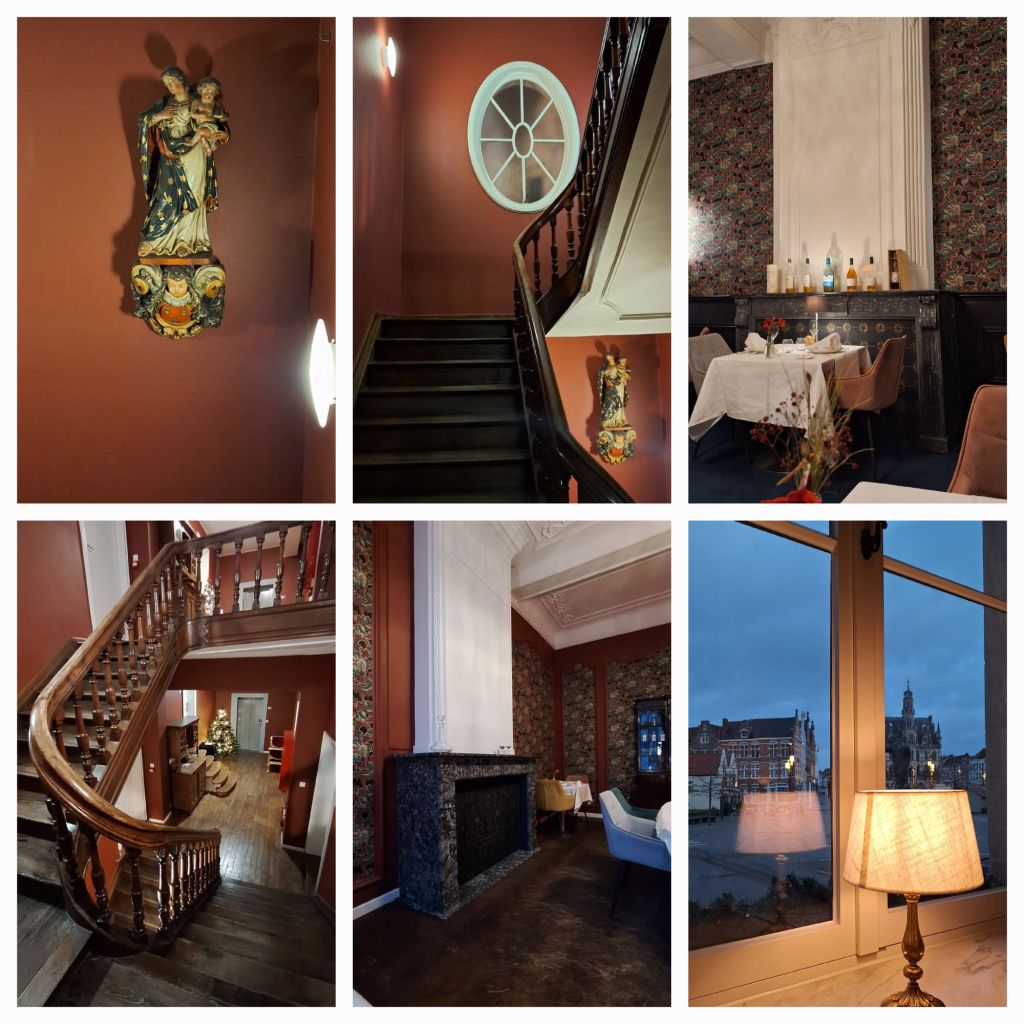 Het is het oudste stenen woonhuis van Oudenaarde (oudste delen uit 1504). Van binnen 18e en 19e eeuws qua aankleding met een mooie houten trap. Een Mariabeeld net buiten mijn kamer. Boven aan de trap een oeil de boeuf ofwel een oculus, een ovaal raam, in het Nederlands runderoog.