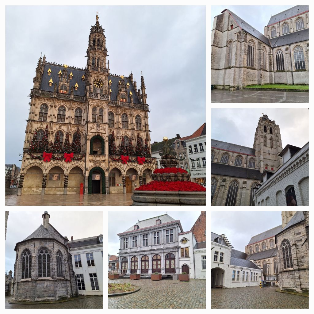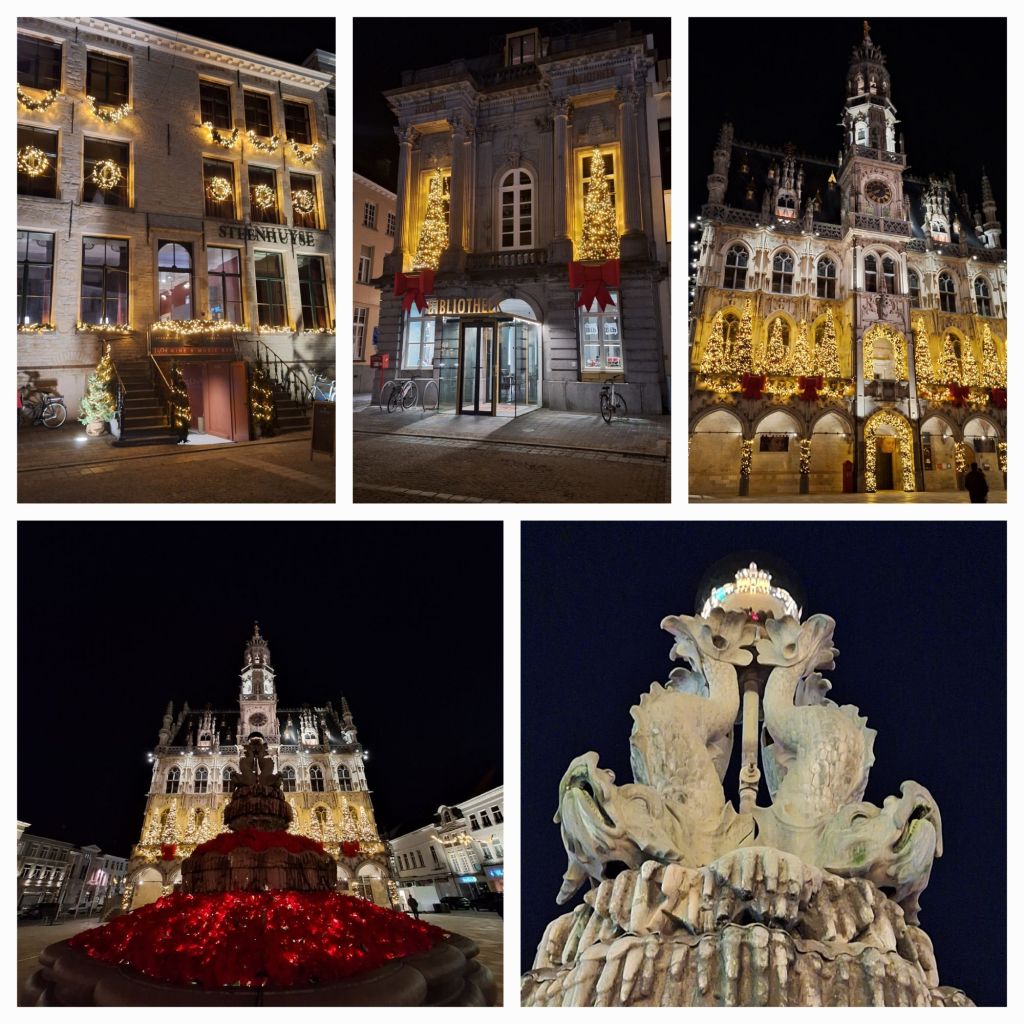 Op naar de Markt, naar het stadhuis. Vanaf de ontbijttafel zag ik de goudkleurige versieringen glimmen. Toen was er wat zon, namelijk.