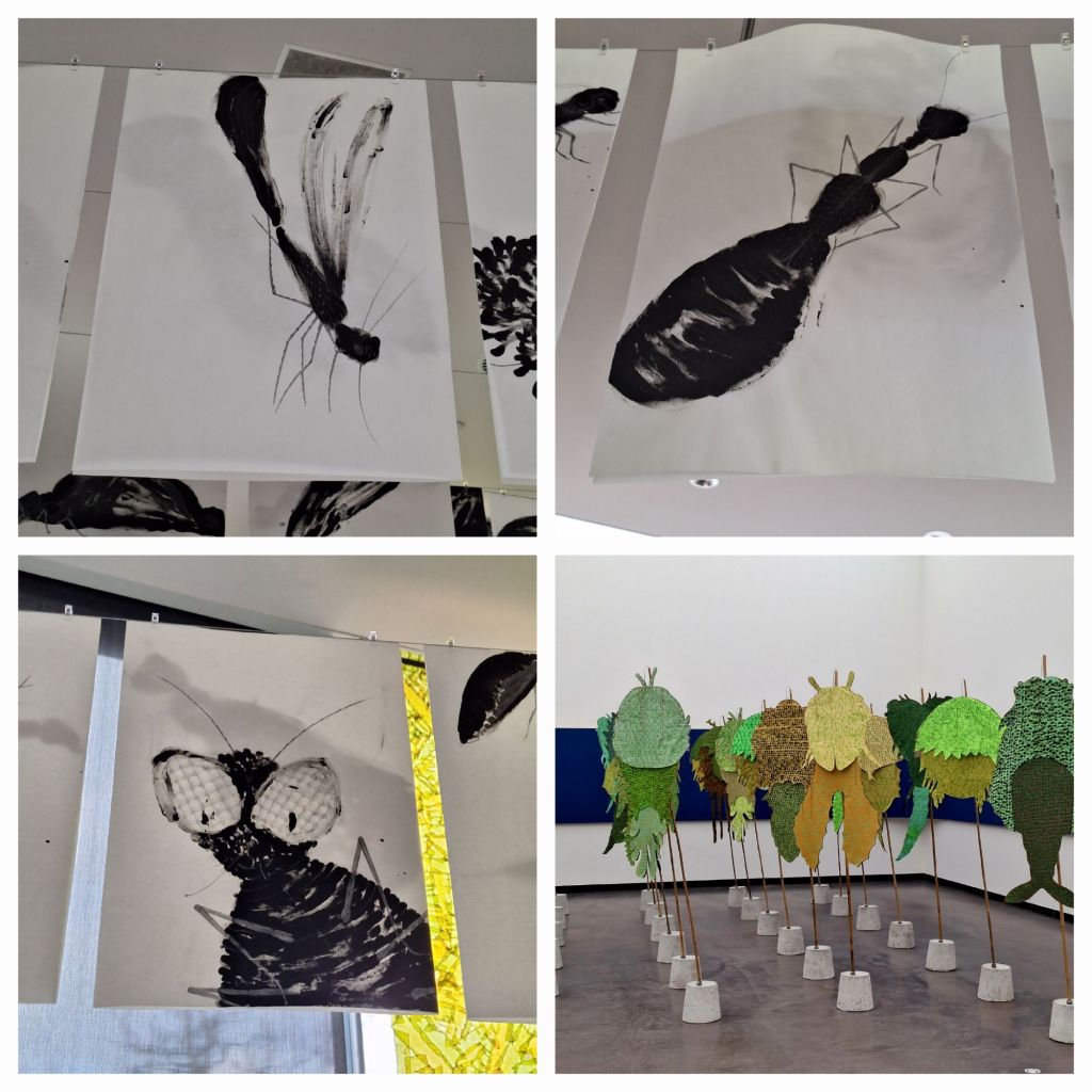 Het meest opvallende is het werk van Mariëlle Videler. 365 gouaches van insecten hangen aan waslijnen door een zaal, werkelijk schitterend gedetailleerd. En in een andere zaal, 365 houten takjes waarop idem zoveel kleine tekeningen leunen, met daarop vogels van allerlei pluimage. Vogels en insecten, bescheiden onderdeel van de natuur, door de mens soms veronachtzaamd, of zelfs verwenst, maar o zo belangrijk.