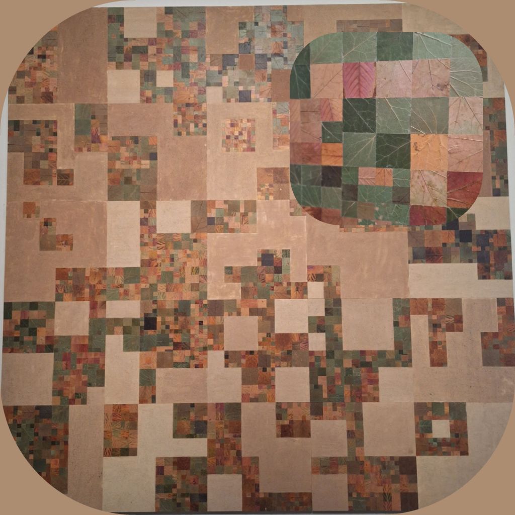 En de quilt die prominent op zaal hangt? Die is gemaakt van bladeren en uitgewreven aarde van de Veluwe.
