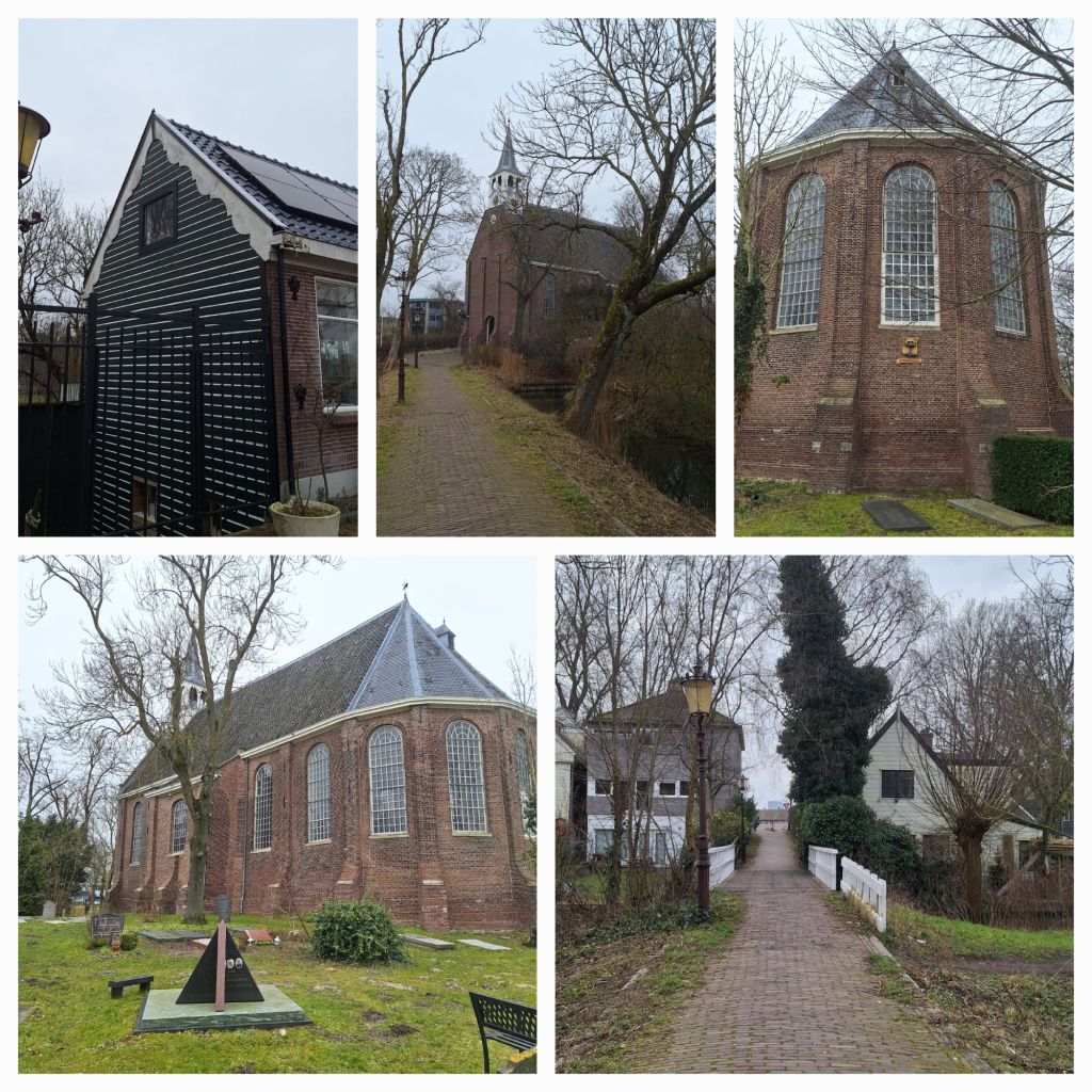 In Buiksloot staat ook een prachtig 17e eeuws kerkje met een kerkhof. Op een bankje neem ik even de tijd voor een pauze. Tussen de graven bloeien sneeuwklokjes en crocussen. Het is er stil.