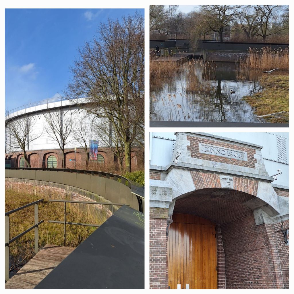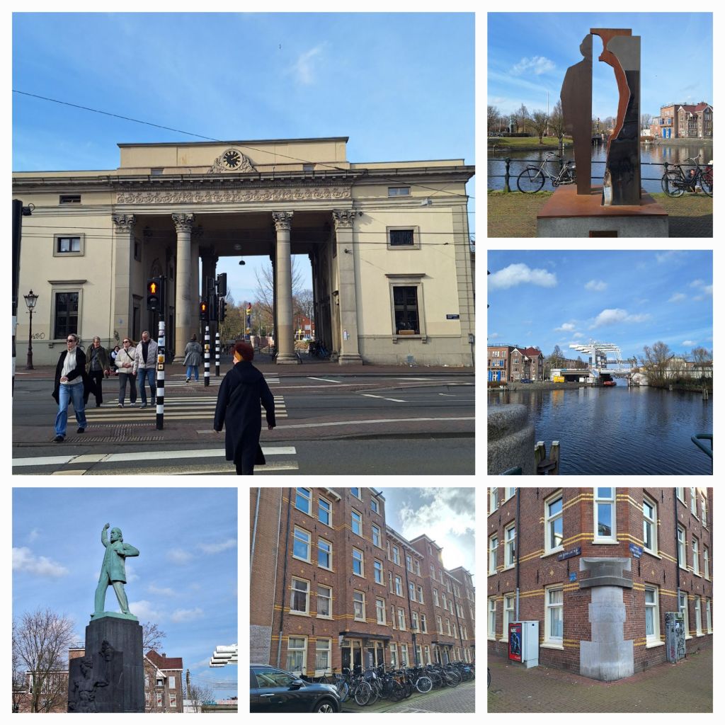 Als ik door de poort kijk, probeer ik me voor te stellen hoe het er nog maar anderhalve eeuw geleden moet hebben uitgezien. Polderland, sloten, molens, koeien, kerktorens in de verte. Nu? Op app word ik gewaarschuwd mijn telefoon diep weg te steken en goed naar de aanwijzingen te luisteren, om in alle drukte niet onder de voet gefietst of gereden te worden. Op naar de Staatsliedenbuurt.