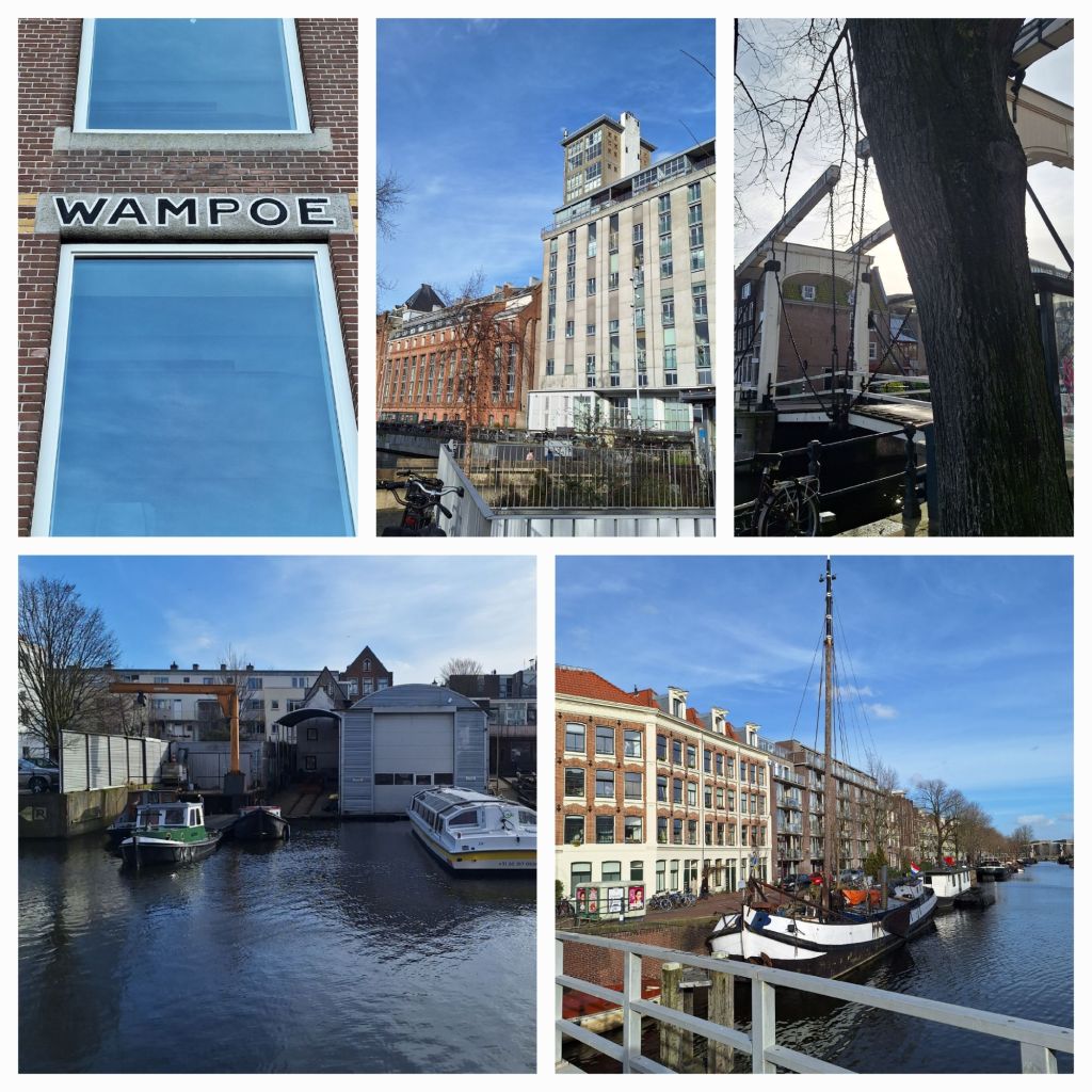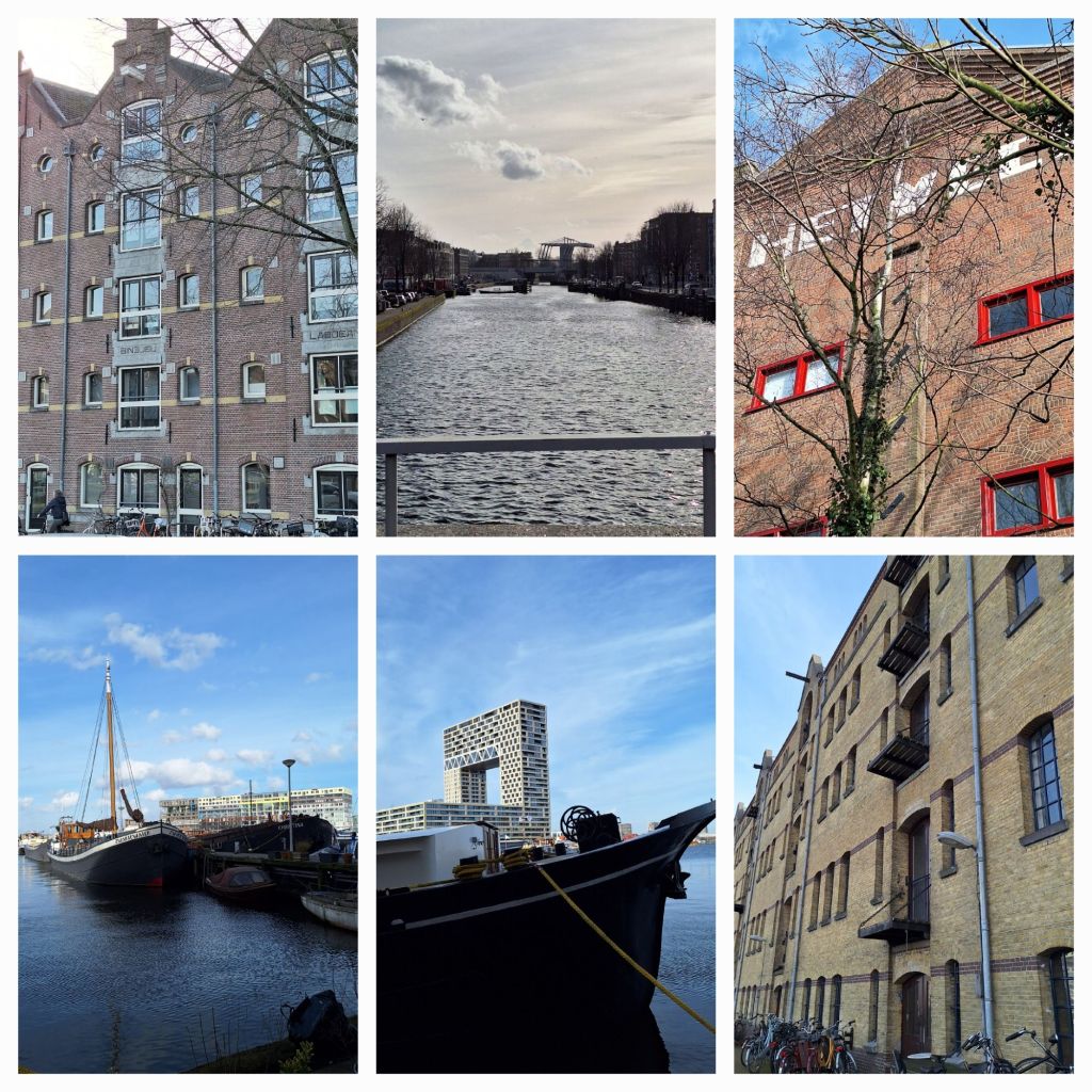 Ik loop weer bij het water, de havens van het IJ, langs pakhuizen en aangemeerde schepen, graansilo’s.