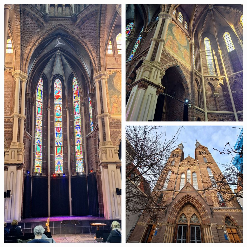 Het is bijna onvindbaar tussen alle winkelgeweld op de Kalverstraat, de smalle neogotische gevel van de kerk, maar eenmaal binnen ben je de straat vergeten. Alleen het draaiorgel is nog te horen.