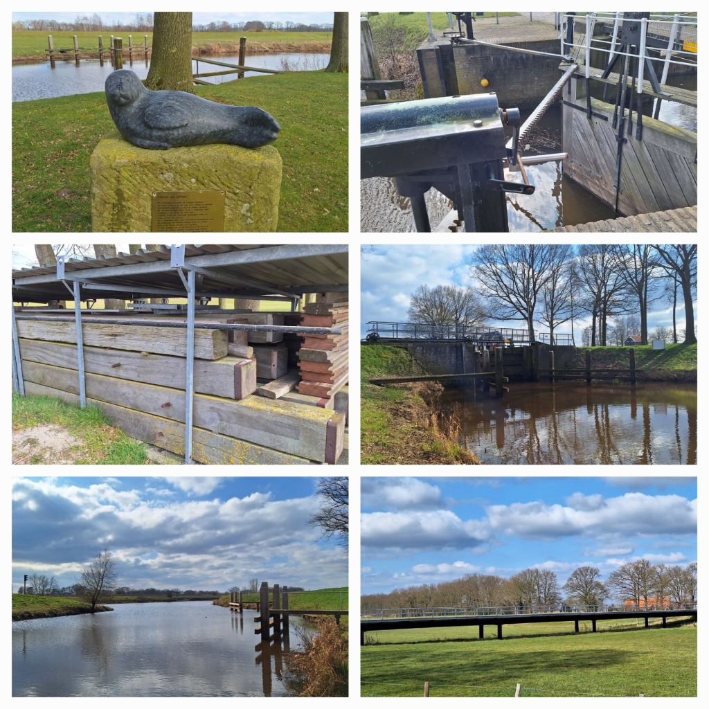 Tussen stuw en sluis staat een grappig beeldje van een zeehond. Hannes van Dalfsen heet-ie.