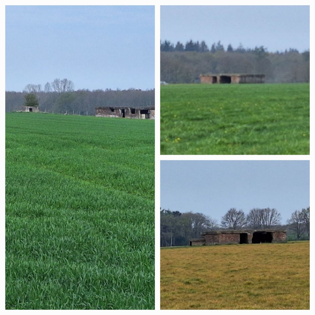 Ik fiets richting het westen en bij Sondel staan merkwaardige bouwsels in het land. Ik had ze vrijdag ook al gezien. Het lijken schuren, maar toch ook niet. Te laag, te grote deuropeningen, er staan ook betonnen voetstukken.