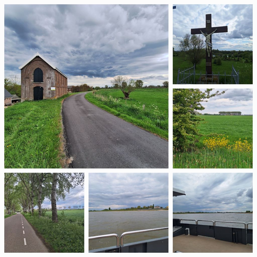 Na het viaduct over deze weg kom ik het prachtige gebied rondom Horssen en Bergharen. Bij Bergharen ligt een langgerekt bebost rivierduin met daarop een bedevaartsoord.