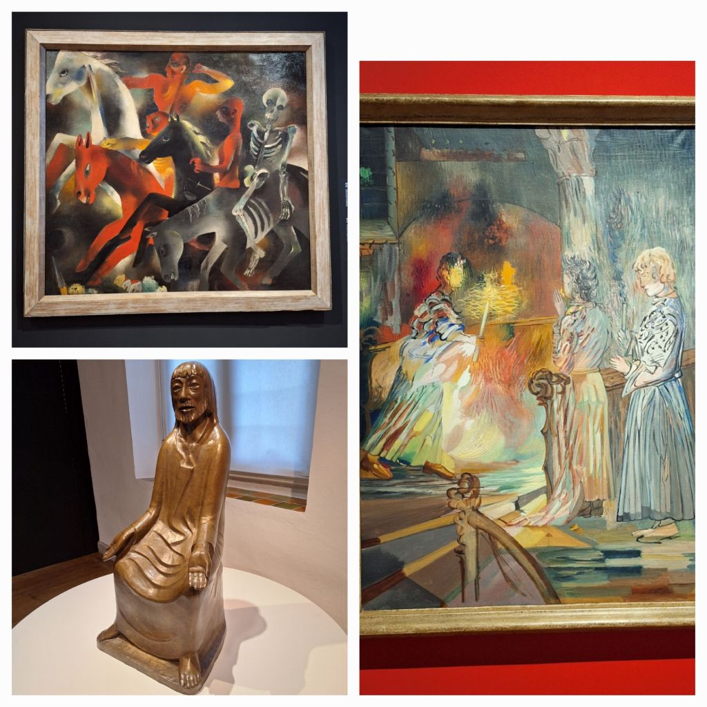 Ik ben in Utrecht, in museum Catharijneconvent waar een tentoonstelling gewijd wordt aan kunst uit het interbellum. Werken van Duitse, Nederlandse en Belgische kunstenaars zijn hier samengebracht in een overrompelende tentoonstelling. Kleurrijk, met diverse kunstvormen. En waarschuwend.
