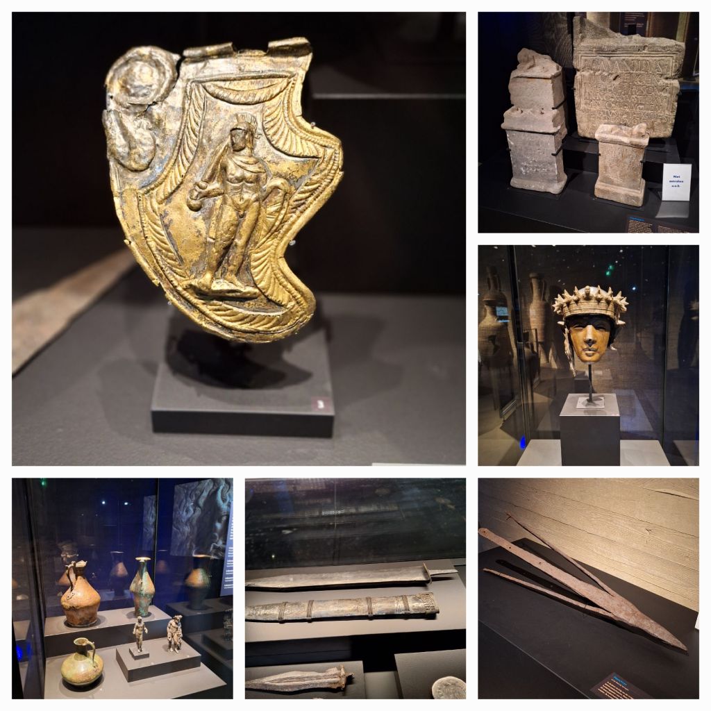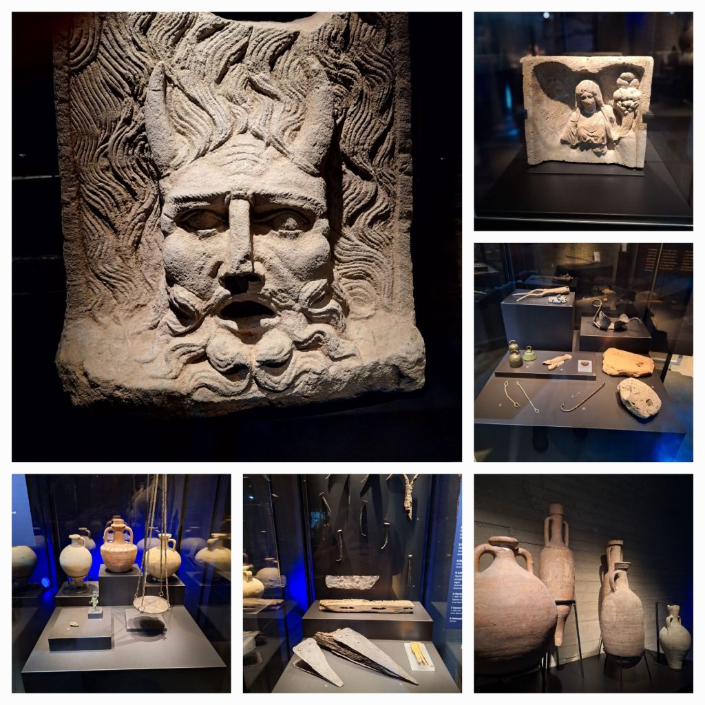 In de vitrines staan de schatten die de Waal in de loop van eeuwen heeft afgestaan. Een paalschoen, uiterst verfijnde beeldjes, spijkers, restanten scheepshout, een zwaard, mantelspelden, kruiken en glaswerk.