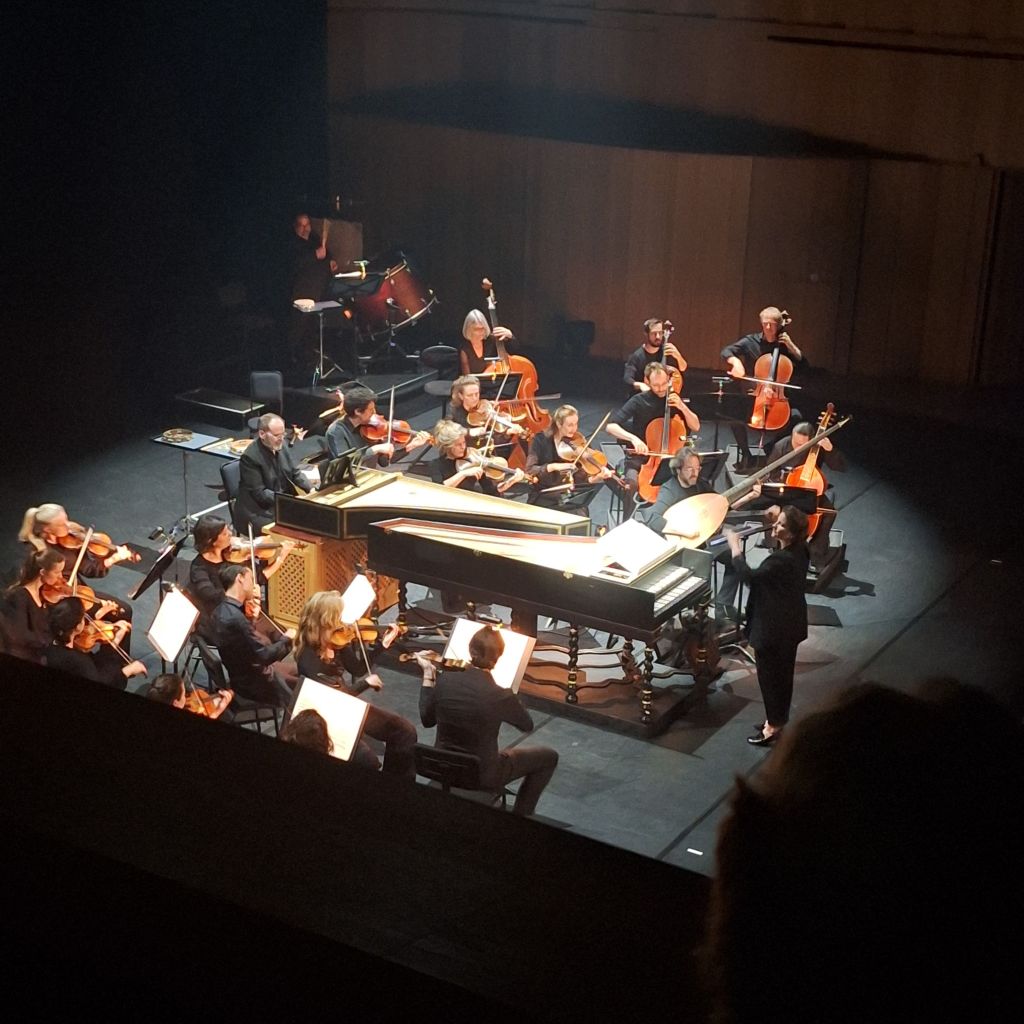 Mijn moeder vond het altijd mooi om naar een dirigent te kijken. Natuurlijk was het haar ook om de uitvoering te doen, maar ze kon enorm genieten van een dirigent in actie. Vanavond zat ik op het puntje van mijn stoel om de dirigent aan het werk te zien. Ze lacht, zingt mee, spoort aan met grote en soms vrijwel onzichtbare bewegingen, danst soms bijna over het podium, speelt clavecimbel terwijl ze met één hand of met haar hoofd het orkest dirigeert. Wauw!