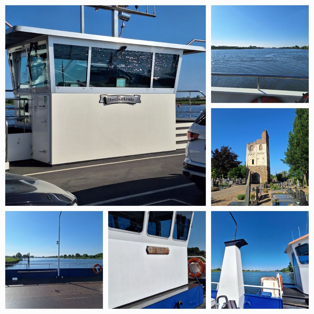 Iets verderop ga ik alweer terug naar de Brabantse kant, via het veer Afferden-Sambeek. De pont heet heel prozaïsch Pierre II. Ook een verbinding die al heel lang bestaat, sinds de middeleeuwen.De Heer van Afferden had het veerrecht en dat verpachtte hij aan de veerbaas.