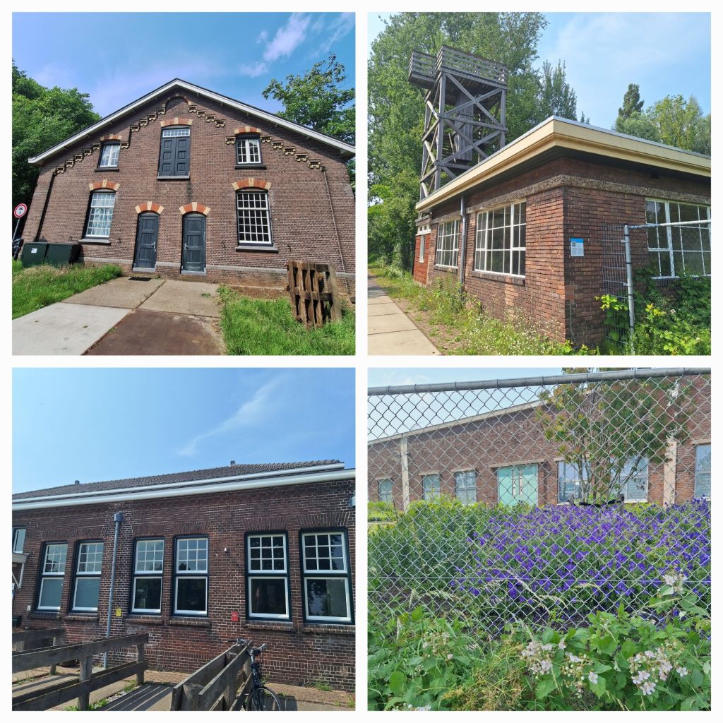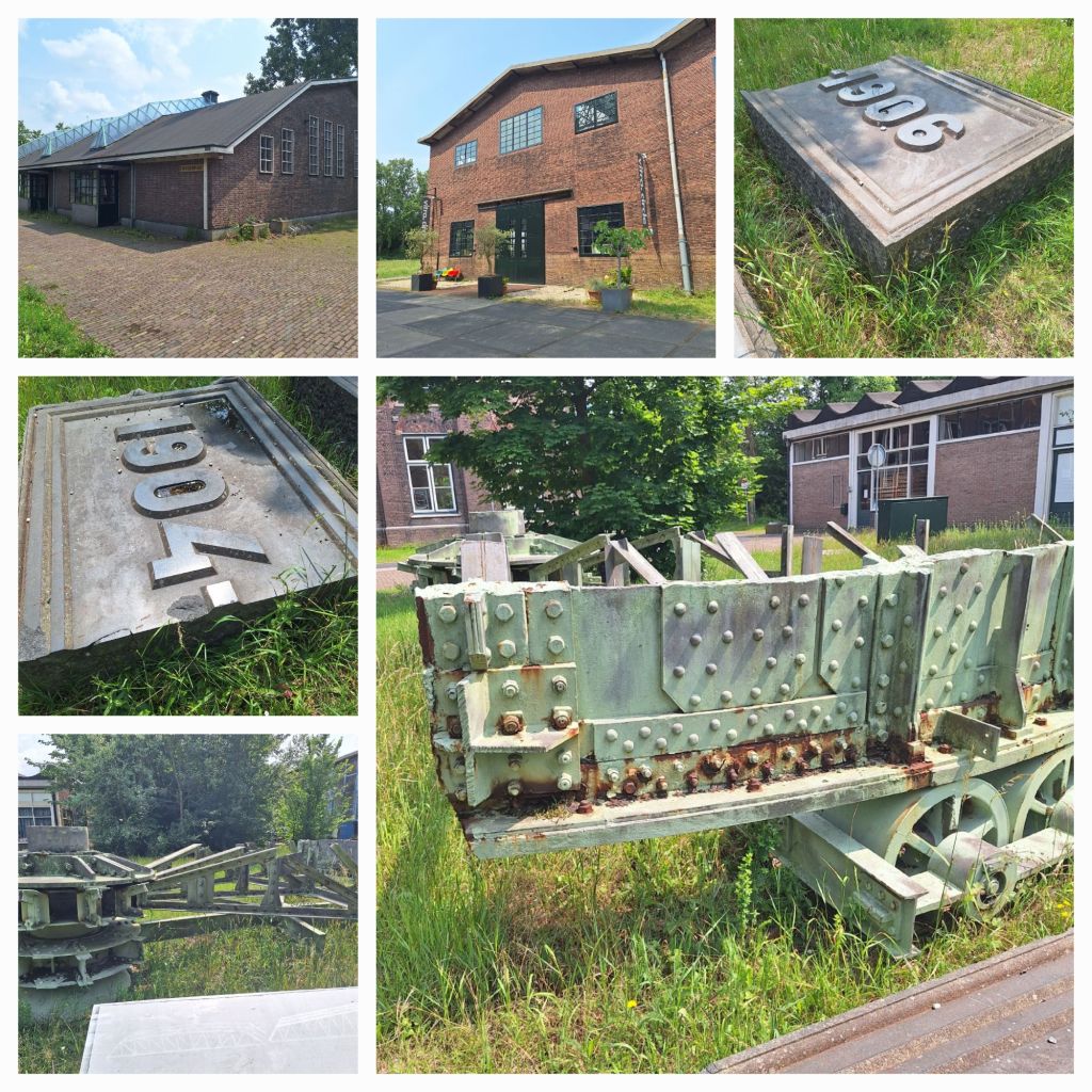Ik loop langs de voormalige expeditieloods. Op een klein stukje rails staat een wagon. Als ik later aan de overzijde van het kanaal sta zie ik daar nog meer stukken rails.